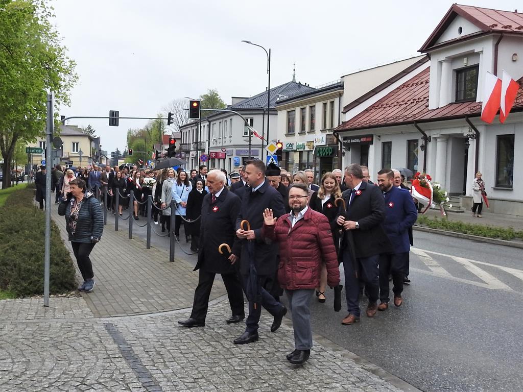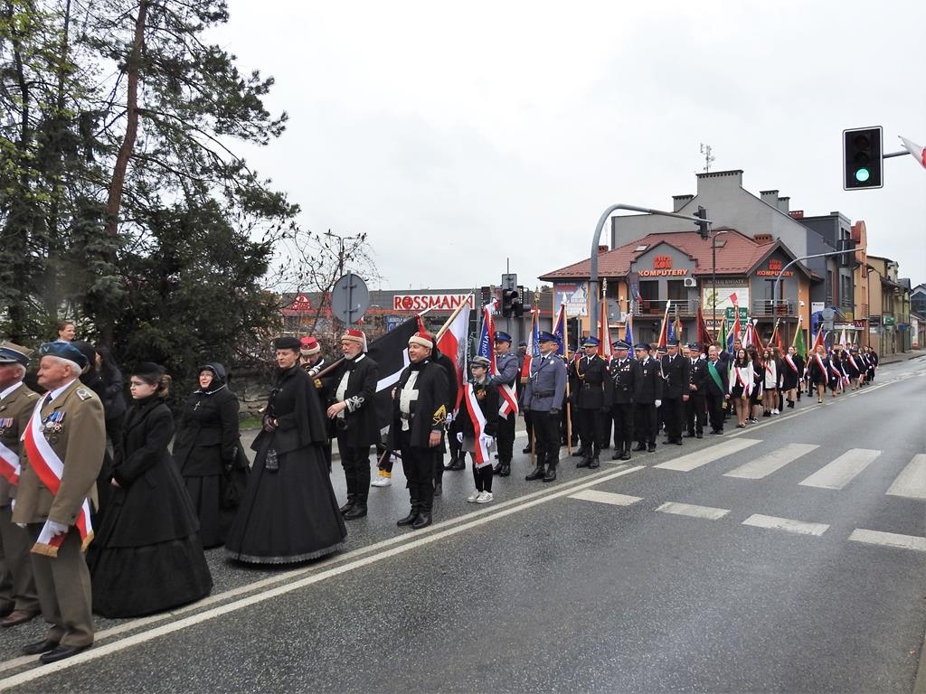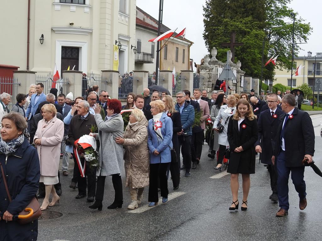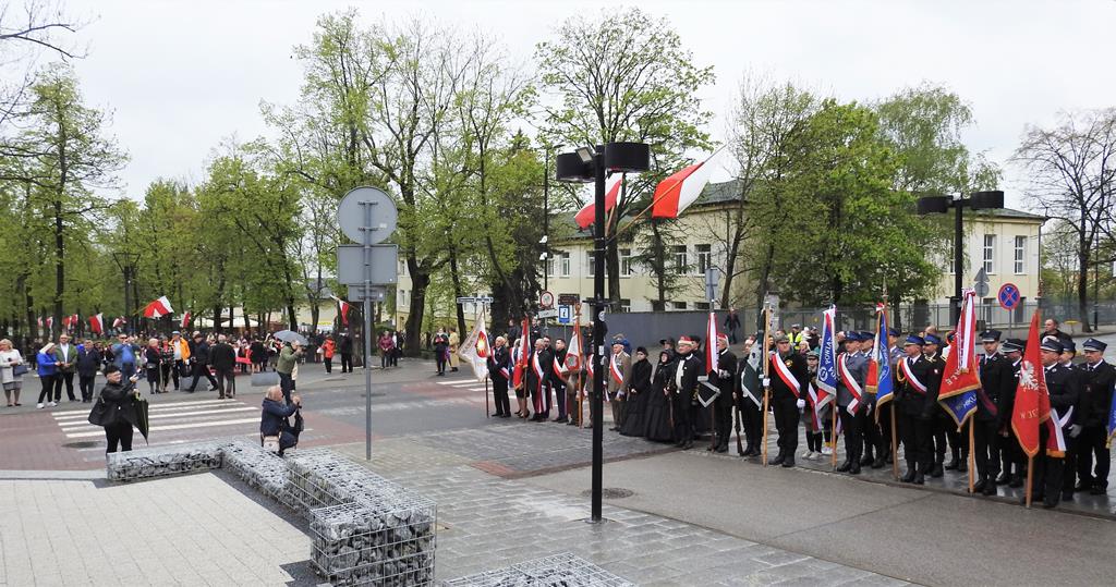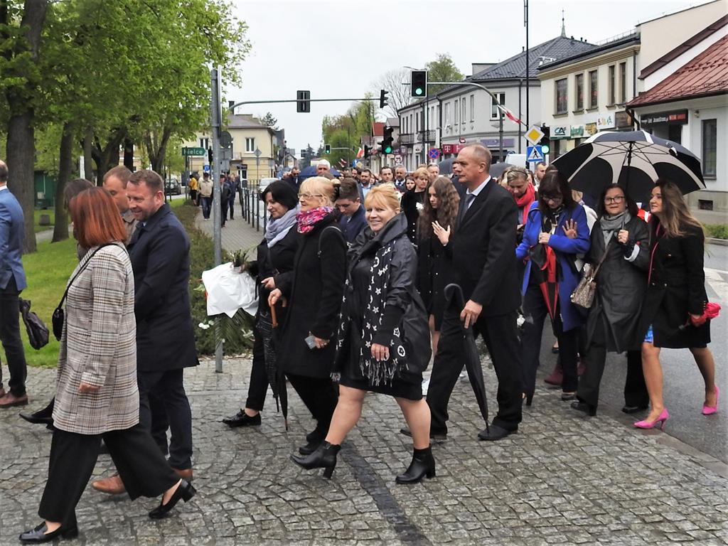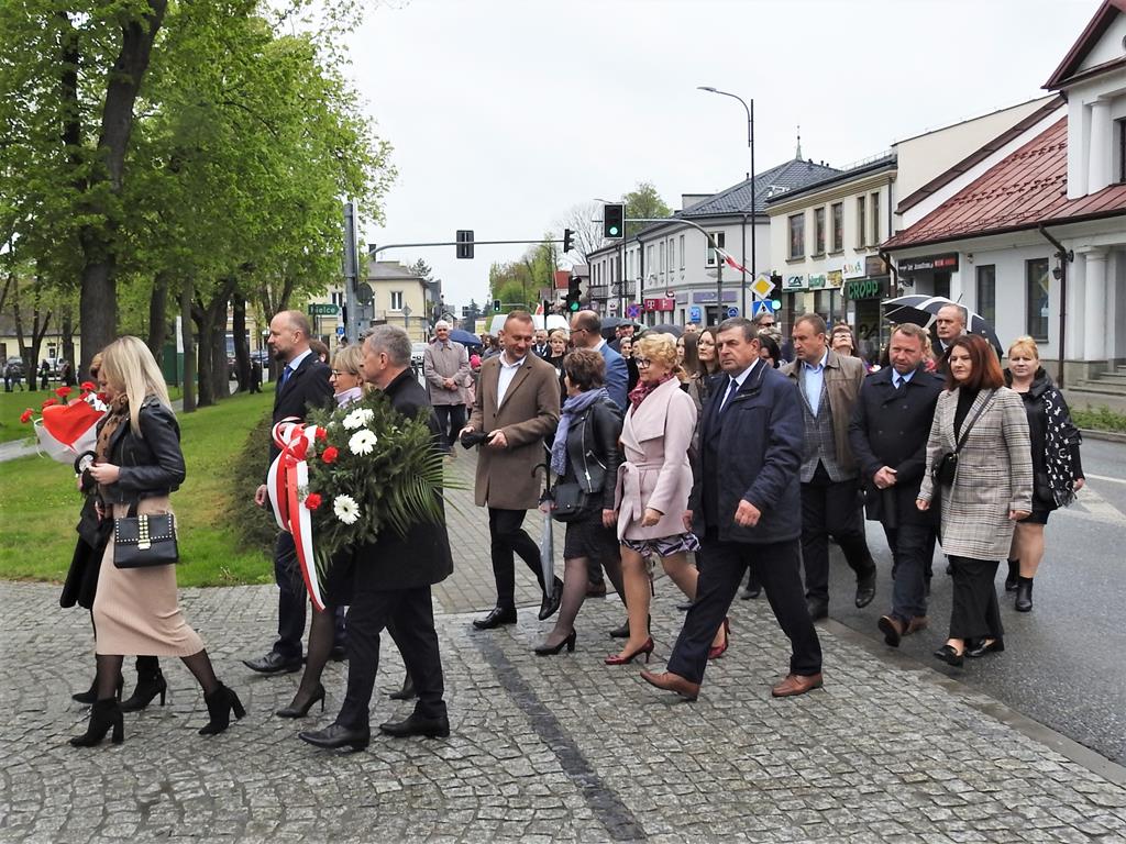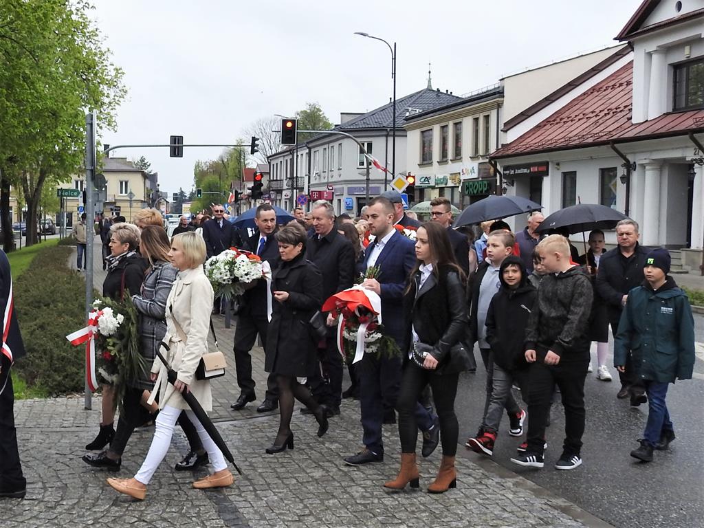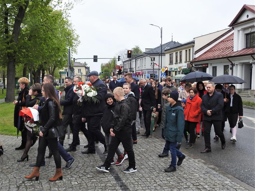 U zbiegu Alei Mickiewicza i ul. Batorego delegacje złożyły kwiaty na płycie Marszałka Józefa Piłsudskiego, pod pomnikiem Męczeństwa oraz pod pomnikiem Żołnierzy Batalionów Chłopskich. Później wszyscy ruszyli pod pomnik Tadeusza Kościuszki stojący przed I Liceum Ogólnokształcącym im. T.Kościuszki. U stóp monumentu wodza Insurekcji 1794 r.’ odśpiewano hymn, złożono wiązanki kwiatów. Odbył się pokaz mażoretek i orkiestry dętej.