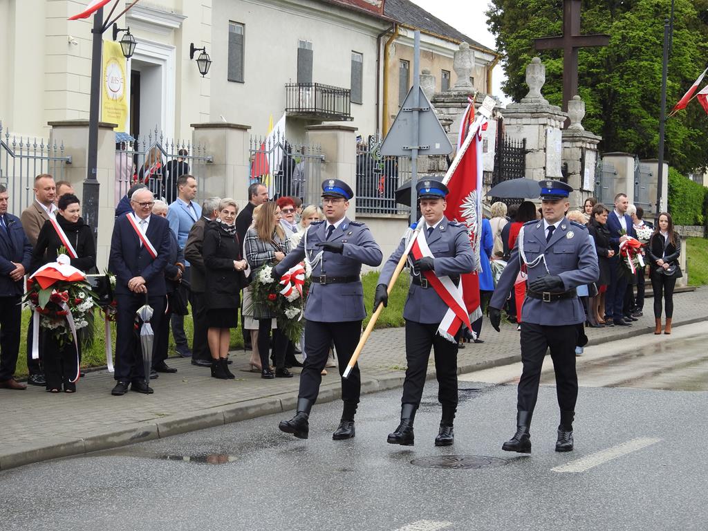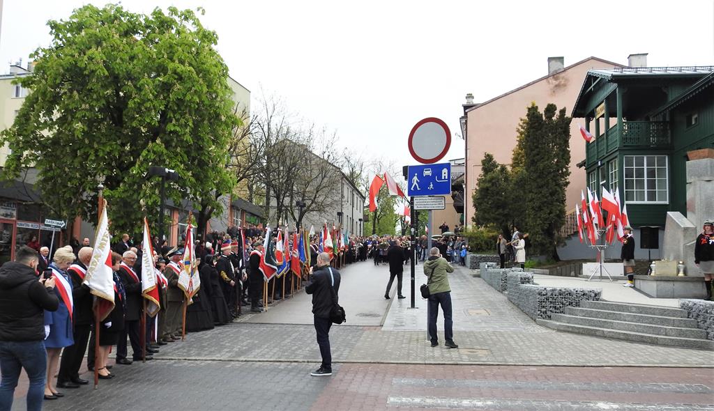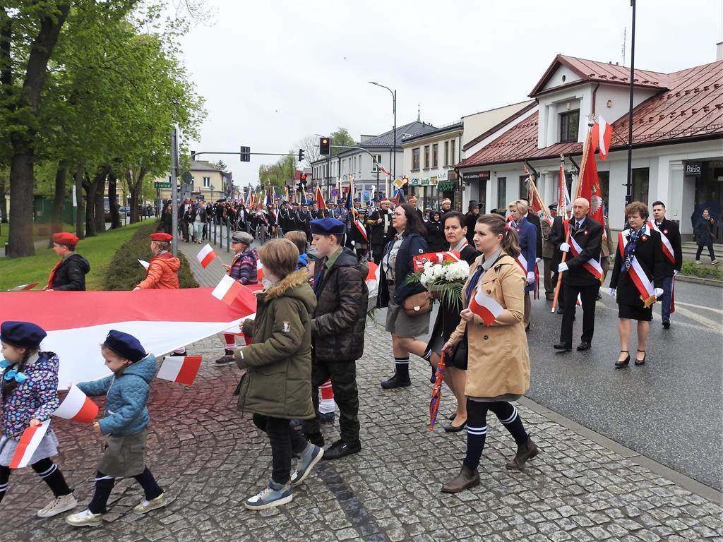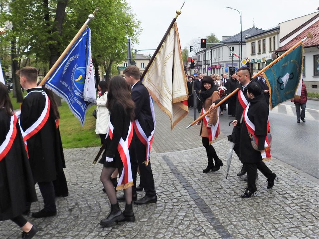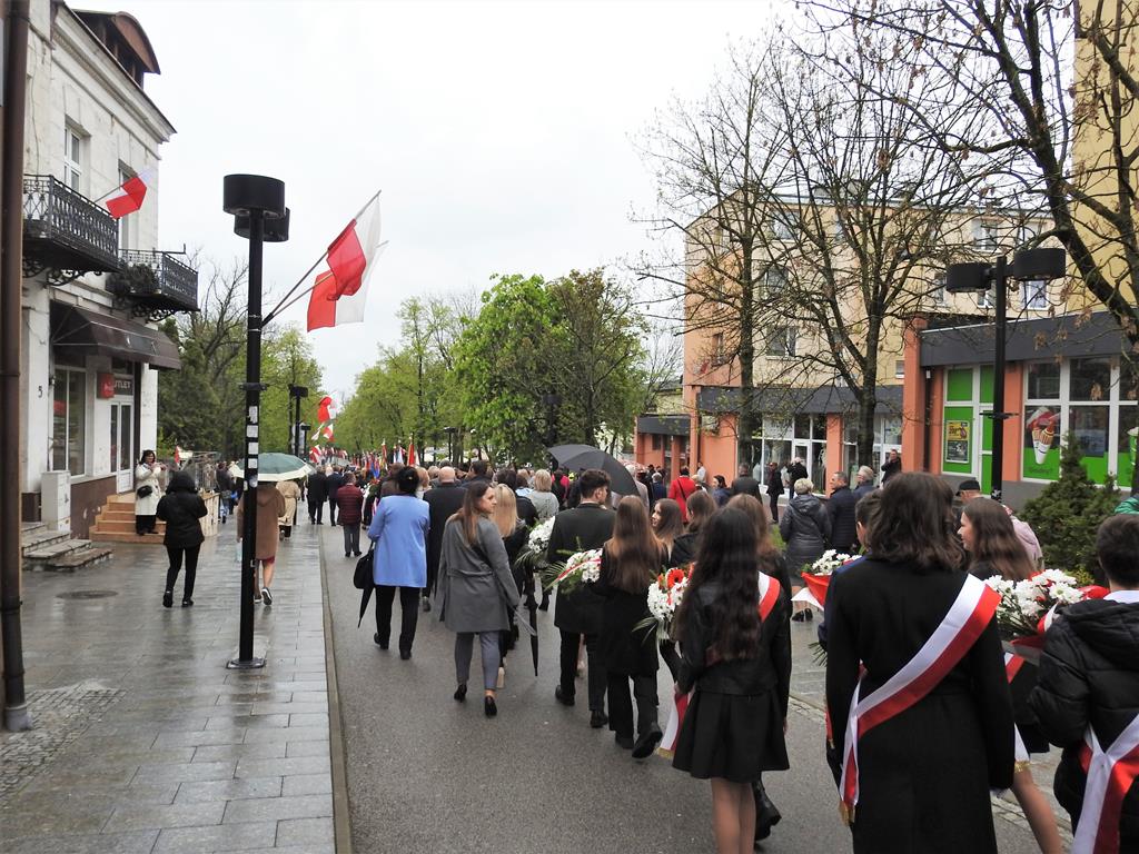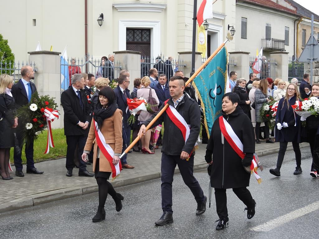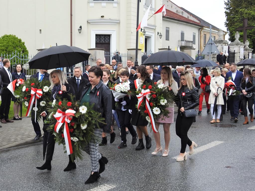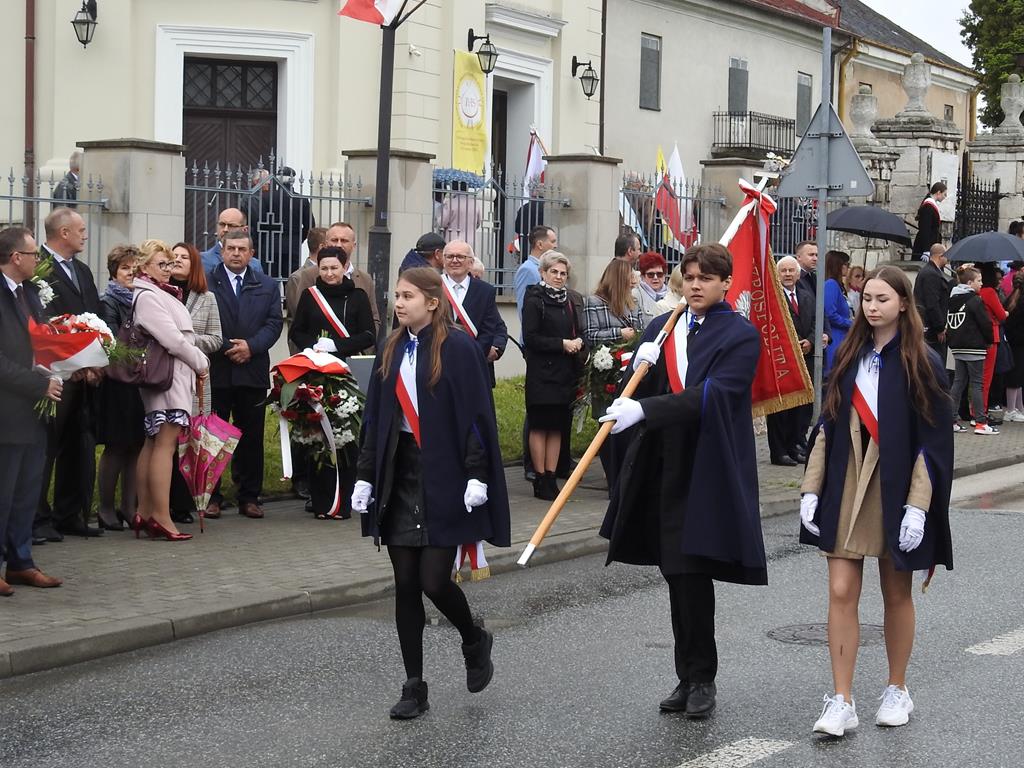 U zbiegu Alei Mickiewicza i ul. Batorego delegacje złożyły kwiaty na płycie Marszałka Józefa Piłsudskiego, pod pomnikiem Męczeństwa oraz pod pomnikiem Żołnierzy Batalionów Chłopskich. Później wszyscy ruszyli pod pomnik Tadeusza Kościuszki stojący przed I Liceum Ogólnokształcącym im. T.Kościuszki. U stóp monumentu wodza Insurekcji 1794 r.’ odśpiewano hymn, złożono wiązanki kwiatów. Odbył się pokaz mażoretek i orkiestry dętej.