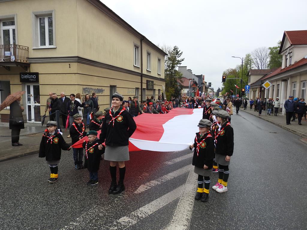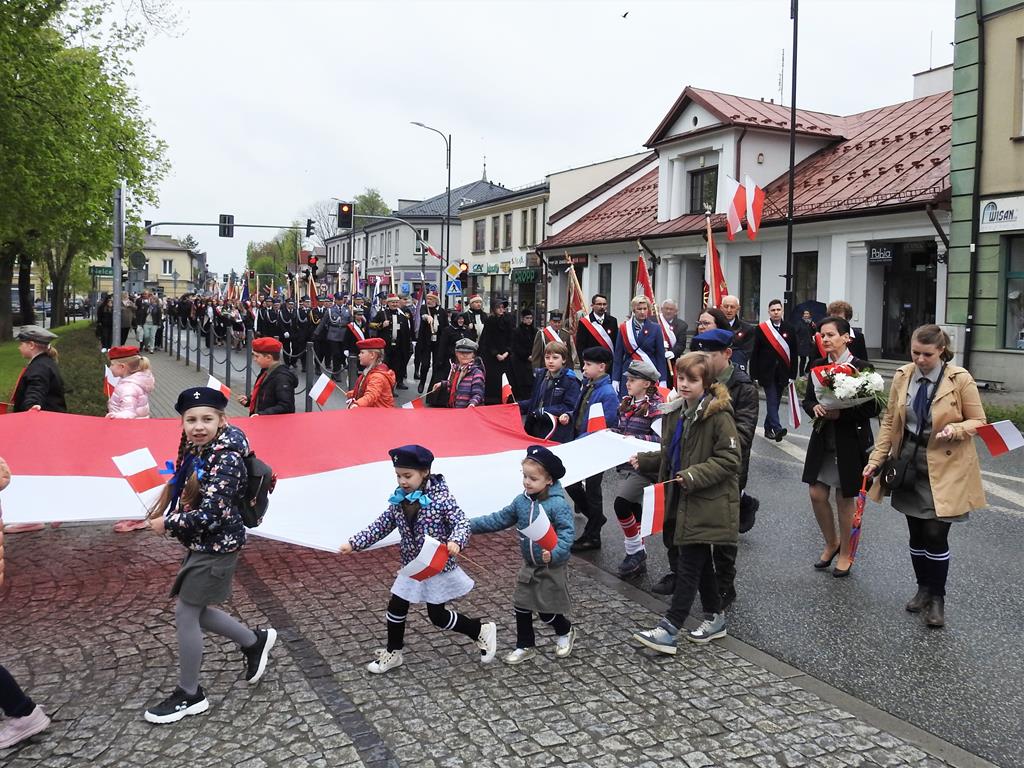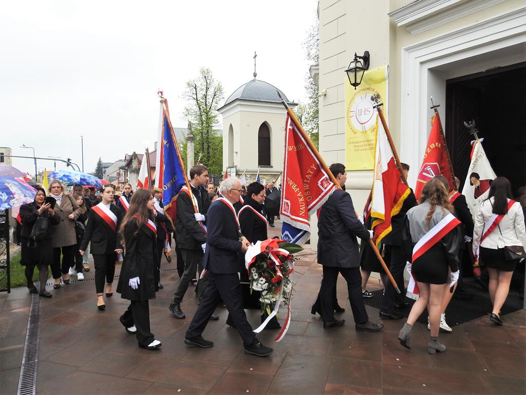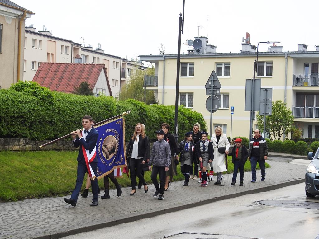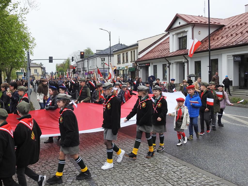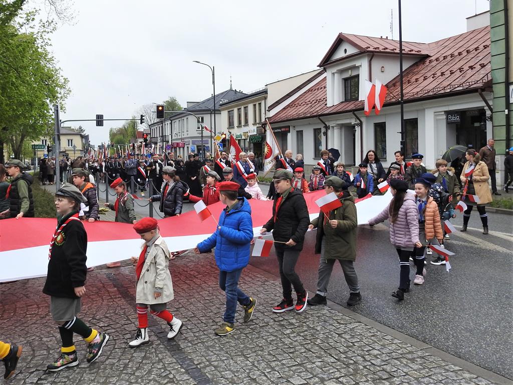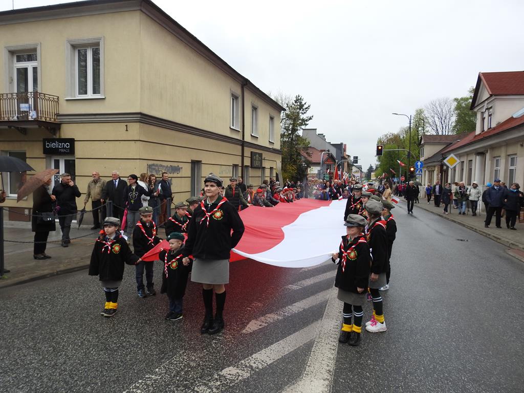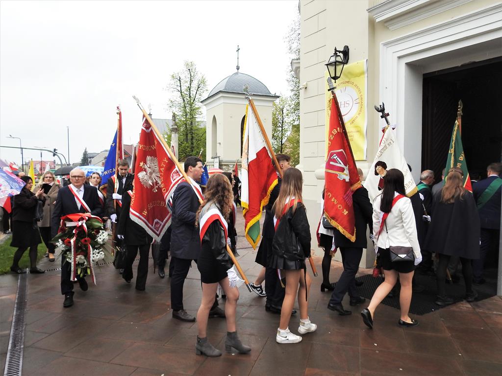 U zbiegu Alei Mickiewicza i ul. Batorego delegacje złożyły kwiaty na płycie Marszałka Józefa Piłsudskiego, pod pomnikiem Męczeństwa oraz pod pomnikiem Żołnierzy Batalionów Chłopskich. Później wszyscy ruszyli pod pomnik Tadeusza Kościuszki stojący przed I Liceum Ogólnokształcącym im. T.Kościuszki. U stóp monumentu wodza Insurekcji 1794 r.’ odśpiewano hymn, złożono wiązanki kwiatów. Odbył się pokaz mażoretek i orkiestry dętej.