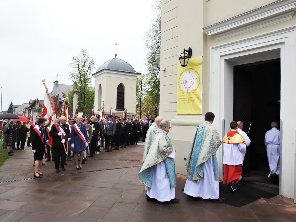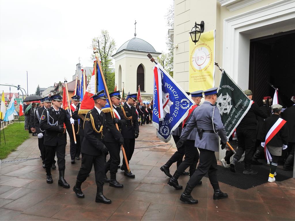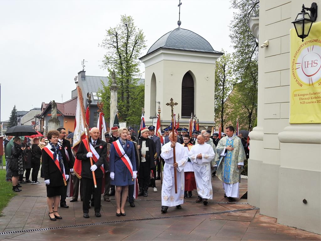 ○ 3 maja 2023 r., w Busku-Zdroju mieszkańcy świętowali 232. rocznicę uchwalenia konstytucji. Była msza święta i przemarsz ulicami miasta. / fot. Jarosław Kruk infobusko.pl