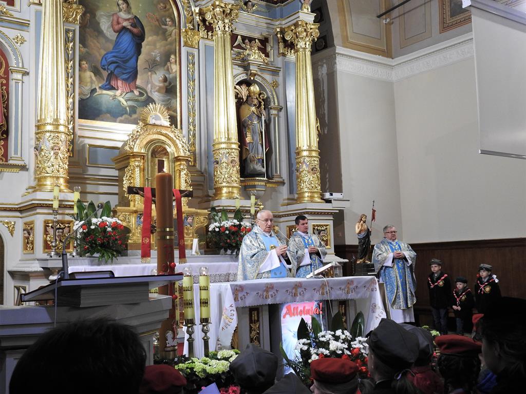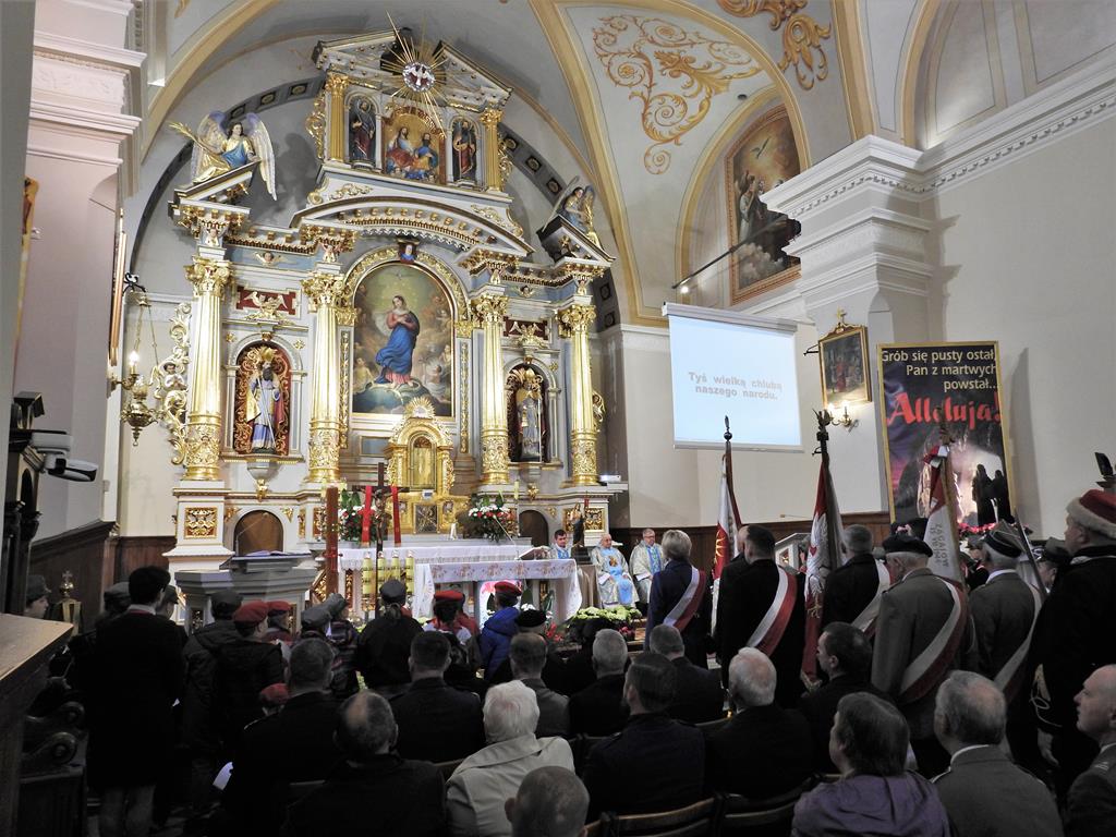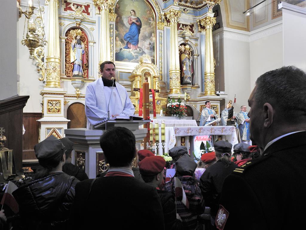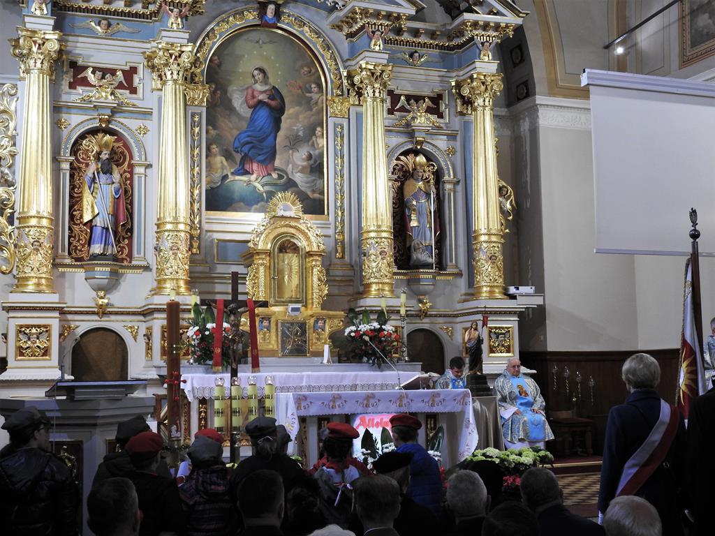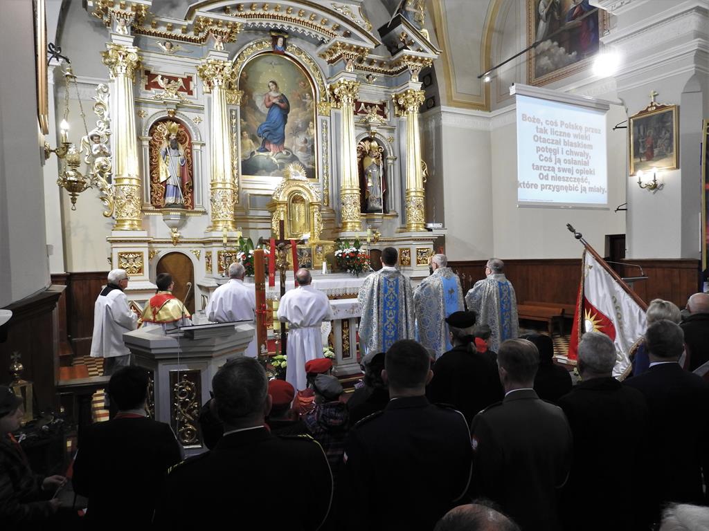 Obchody rozpoczęły się w kościele pod wezwaniem Niepokalanego Poczęcia Najświętszej Maryi Panny. Zgromadzili się tam mieszkańcy, władze, młodzież, strażacy, harcerze policjanci i żołnierze.
