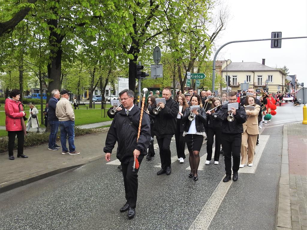 Po Mszy pochód wyruszył spod kościoła, przez Plac Zwycięstwa pod Willę „Polonia”. Grała orkiestra Buskiego Samorządowego Centrum Kultury, za nią szły mażoretki. Potem poczty sztandarowe, mieszkańcy, zaproszeni goście.