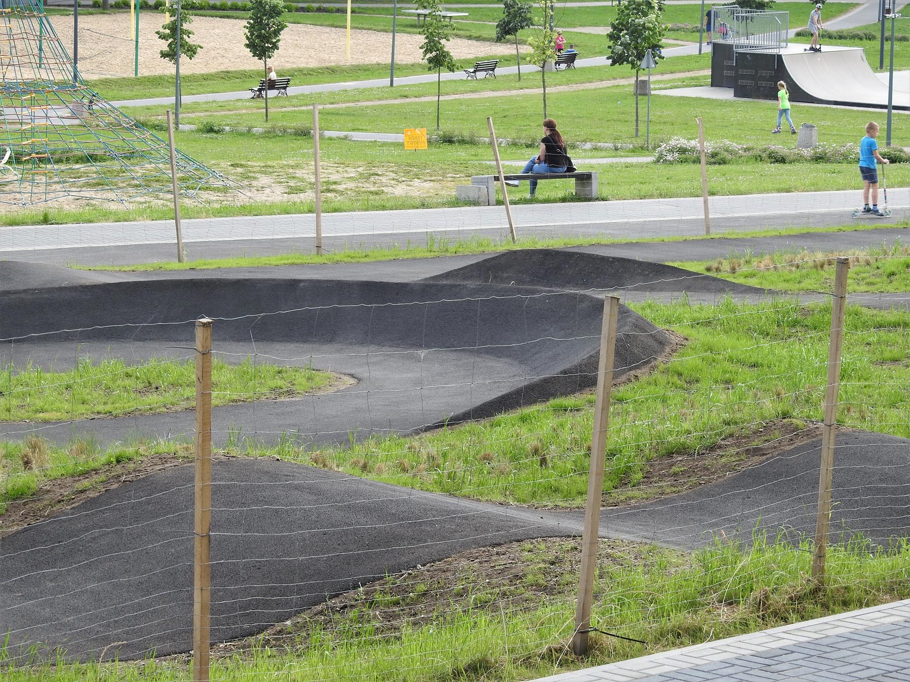 Kielce.eu [06.06.2022]: – Pumptrack to połączenie dwóch angielskich słów: „pump” czyli pompować oraz „track” oznaczającego tor. Jazda na pumptracku, nazywana “pompowaniem”, polega na pokonywaniu wzniesień przy wykorzystaniu siły mięśni i grawitacji. Jest to doskonałe ćwiczenie ogólnorozwojowe. Uczy pokonywania zakrętów i podnosi technikę jazdy. To przekłada się na bezpieczeństwo w trakcie codziennego użytkowania rowerów, deskorolek i hulajnóg. Z pumptracka mogą korzystać zarówno dzieci, początkujący, amatorzy jak i sportowcy...♂ | fot. UM Kielce / źródło: Kielce.naszemiasto.pl♂