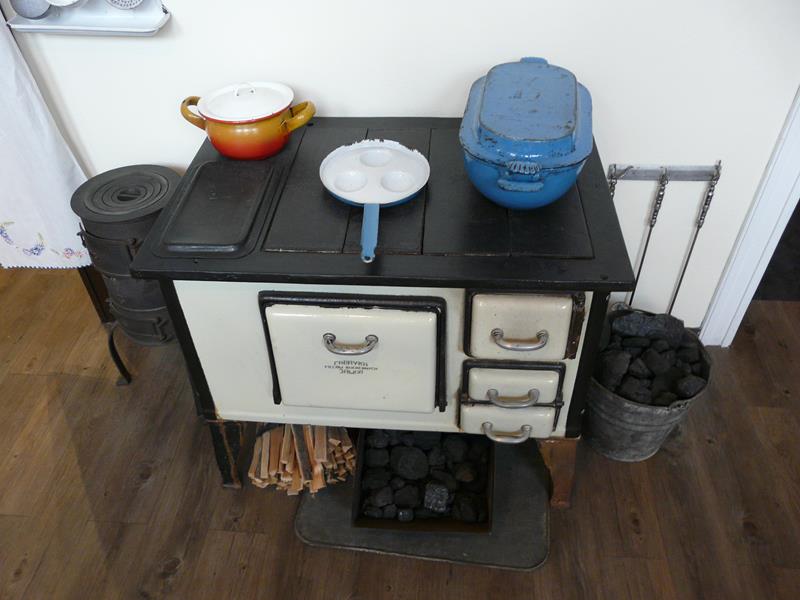 ○ Westfalka ♂– popularny dawniej metalowy, wolno stojący piec kuchenny z żeliwną płytą grzejną. Jako czynnik grzewczy wykorzystywany jest głównie węgiel lub drewno. Nazwa wywodzi się od pierwszych tego typu urządzeń produkowanych na terenie niemieckiej Westfalii. Oprócz przyrządzania jedzenia westfalka pełnić mogła również funkcję piekarnika do mięs, ciast i chleba, a ponadto, w przypadku zastosowania tzw. podkowy wodnej, umożliwiała przygotowanie ciepłej wody użytkowej w tzw. buforze (zewnętrznym zasobniku). / fot. Wikipedia♂