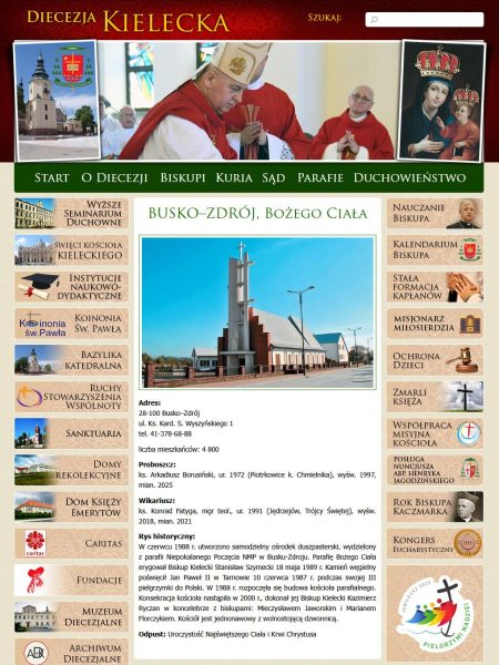 W niedzielę, 21 września 2025 roku, w najmłodszej z trzech buskich parafii, Parafii Bożego Ciała odbyła się uroczystość wprowadzenia nowego gospodarza – proboszcza księdza Arkadiusza Borusińskiego. Liturgii przewodniczył Ordynariuszem Diecezji Kieleckiej biskup Jan Piotrowski. – informuje 26.09.2025 za Parafią Bożego Ciała portal busko.com.pl