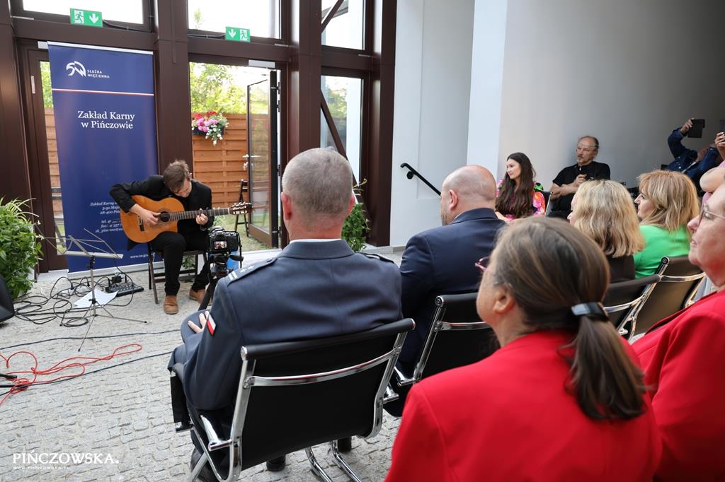 ○ Oprawą instrumentalną wernisażu była muzyka filmowa grana przez pana Filipa Tuza. / fot. Piotr Młynek, pinczowska.pl♂