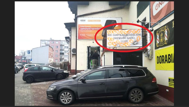 ○ Baner z dramatycznym apelem Rodziców dzieci uczęszczających do PSP w Siesławicach im. Kornela Makuszyńskiego: „NIE ZAMYKAJCIE DZIECIOM DRZWI DO NAUKI !!!!!!!„