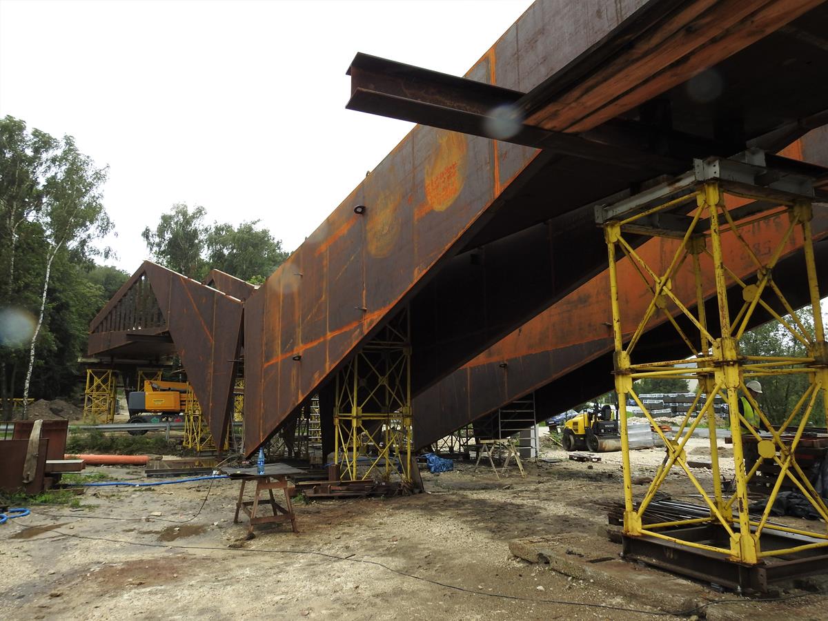 ▲ Solidna, mierząca 250 metrów i ważąca ok. 500 ton stalowa konstrukcja nad ciekiem wodnym to most a nie kładka na Górkę. / fot. Jarosław Kruk; infobusko.pl