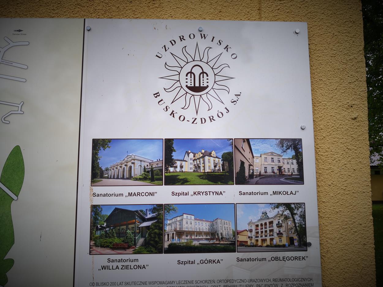 ○ Fragment tablicy informacyjnej na ścianie jednego z obiektów Uzdrowiska Busko-Zdrój S.A.