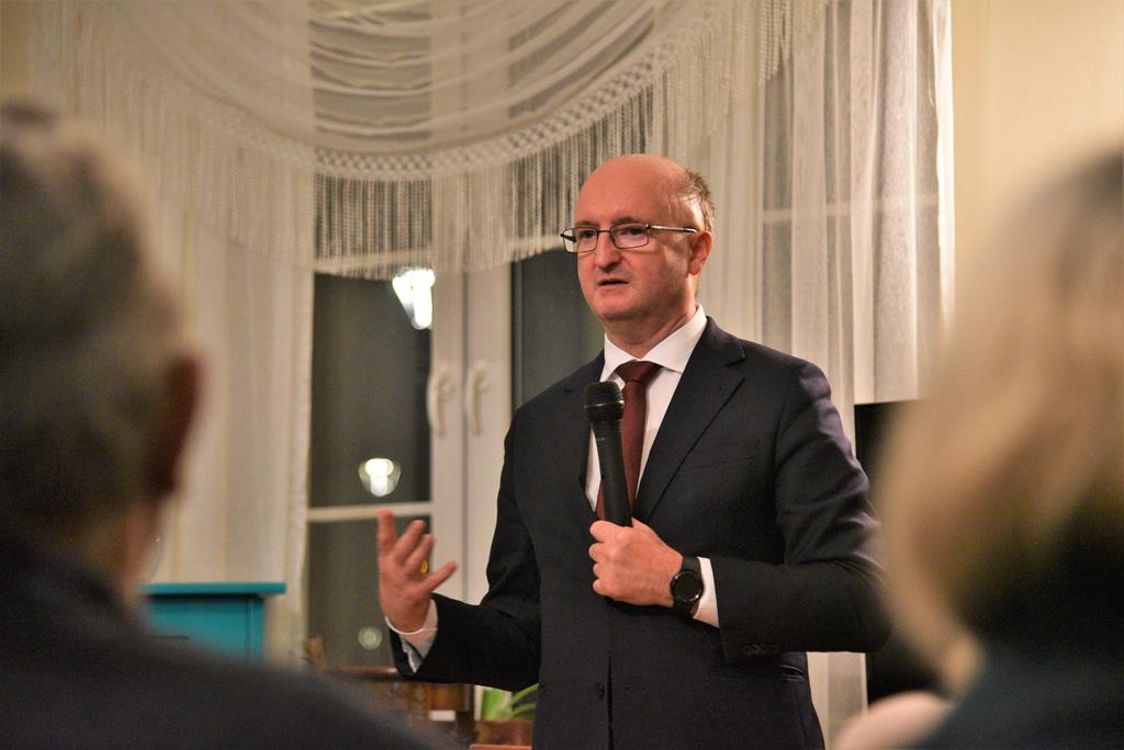 ○ Busko-Zdrój, 10.12.2022: Mieszkańcy Buska-Zdroju spotkali się z wiceszefem MSZ Piotrem Wawrzykiem w pensjonacie Sanato. / fot. Jarosław Kruk infoBusko.pl