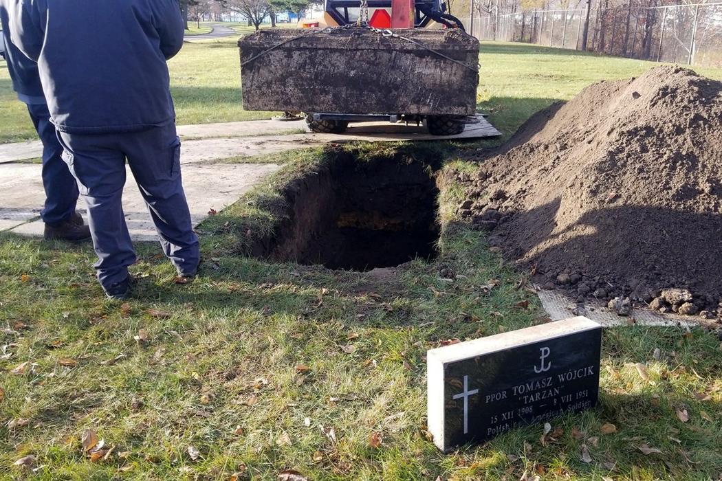 ○ 17.11.2020 r. Ekshumacja zwłok Tomasza Wójcika Tarzana na cmentarzu w Detroit / Fot. Związek Żołnierzy Narodowych Sił Zbrojnych koło w Chicago