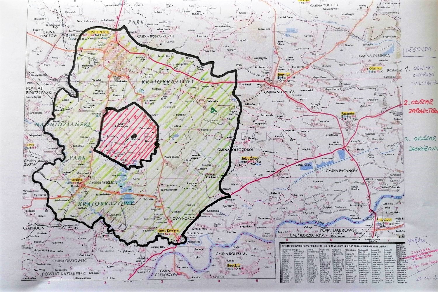 Jednak w związku z wykryciem ogniska wysoce zjadliwej grypy ptaków na terenie powiatu buskiego, wyznaczono teren zapowietrzony do 3 km wokół potwierdzonego siedliska. Objęte są nim takie miejscowości, jak: Gluzy, Brzezie, Chotel Czerwony, Dobrowoda i Budzyń. Natomiast terenem zagrożonym, sięgającym do 10 km od potwierdzonego przypadku, jest pięć gmin: Busko-Zdrój, Solec-Zdrój, Stopnica, Nowy Korczyn i Wiślica – wymienia Artur Uchański.
