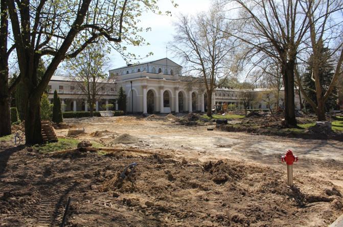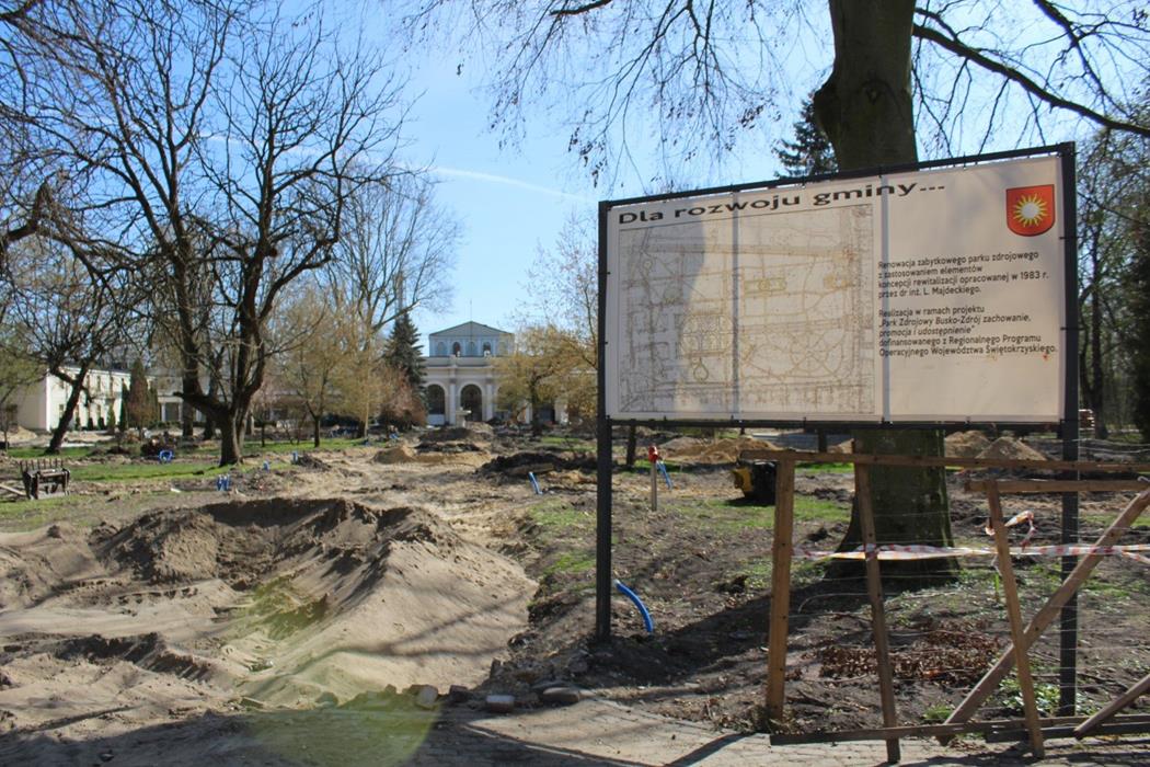 Jak informuje Dariusz Musiał, szef firmy Spółdzielnia Robotnicza z Buska-Zdroju, wykonującej inwestycję, mimo epidemii i niepełnej obsady, prace idą zgodnie z harmonogramem. Na ukończeniu są roboty instalacyjne. Większość alejek już wyłożono kostką brukową. W poniedziałek rozpoczną się prace przy Sanatorium Marconi.