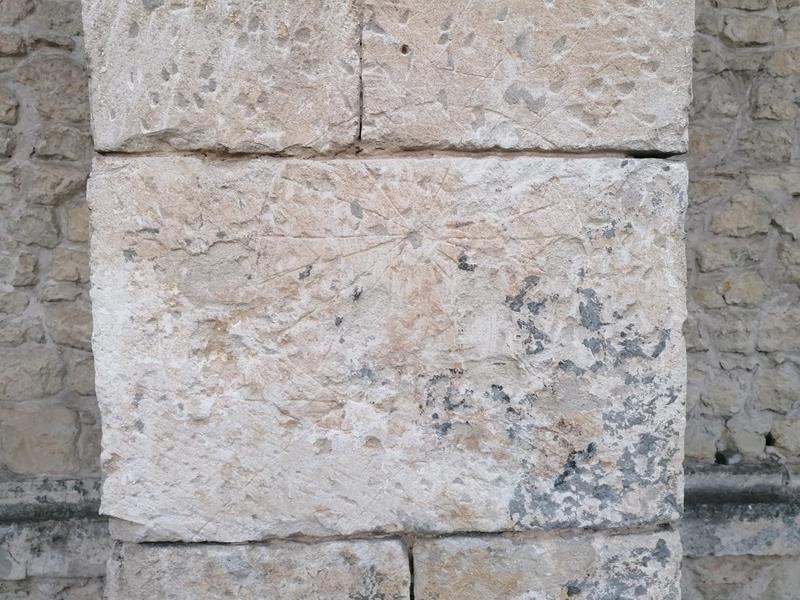 ○ 1/ Ledwo widoczna tarcza wydrapana na przyporze kościoła w Czarnocinie♂; 2/ Tarcza najstarszego w Polsce „słonecznika” zachowana na przyporze kościoła w Strożyskach na Ponidziu♂ / fot. Marta Gajda, Radio Kielce