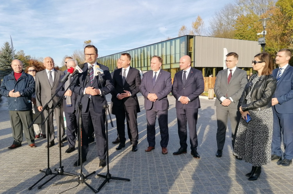 ○ 20.10.2021. Busko-Zdrój. Wiceminister infrastruktury Marcin Horała z wizytą w Busku-Zdroju. / Fot. Marta Gajda-Kruk / Radio Kielce♂