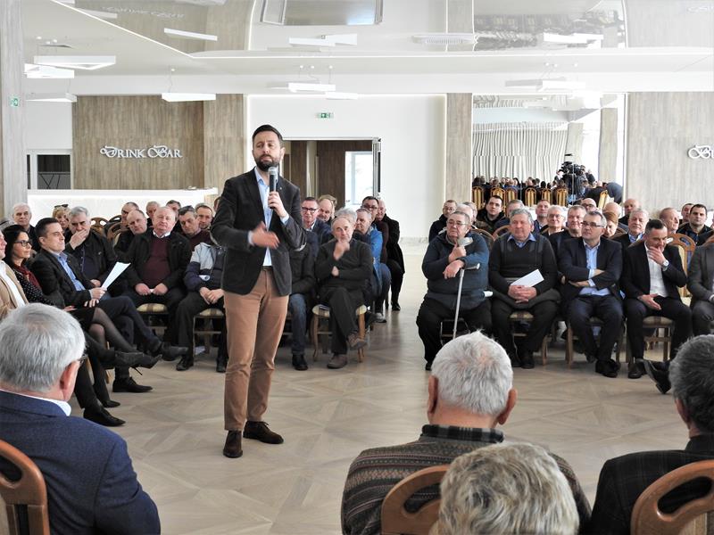 Busko-Zdrój, 18.03.2023: Podczas spotkania Władysław Kosiniak-Kamysz odniósł się także m.in. do akcji stowarzyszenia „Oszukana wieś”, które w piątek (17 marca) zablokowało wejście do Targów Kielce wicepremierowi i ministrowi rolnictwa Henrykowi Kowalczykowi♂. / fot. Jarosław Kruk infoBusko.pl