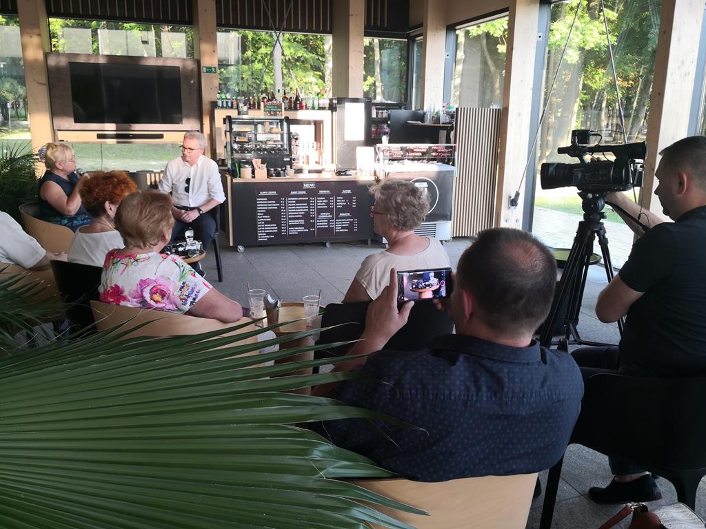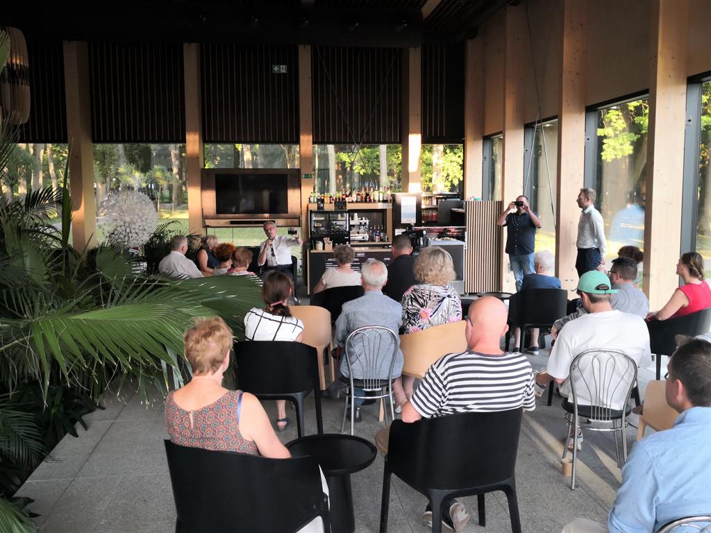 ○ W letnie czwartkowe popołudnie, 24.08.2023, w Oranżerii Domu Zdrojowego odbyło się spotkanie autorskie z Grzegorzem Kielesińskim, pasjonatem fotografii, członkiem Polskiego Stowarzyszenia Edukacji Plastycznej. / fot. Jarosław Kruk infoBusko.pl