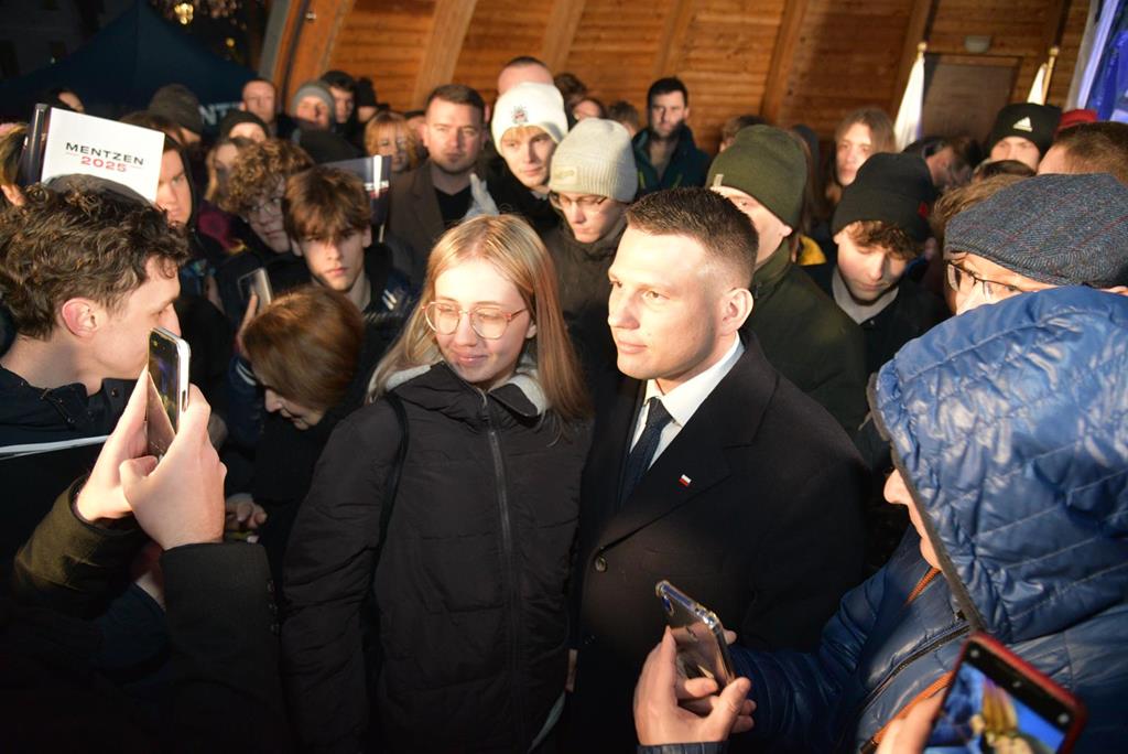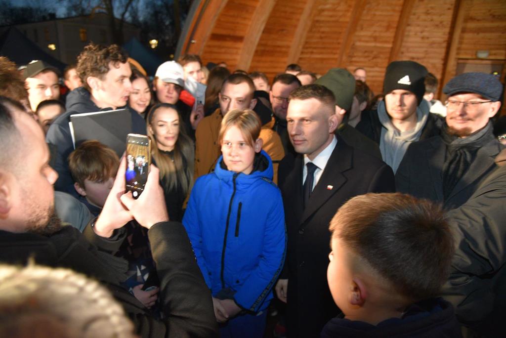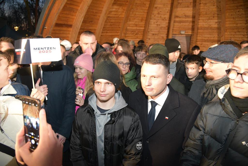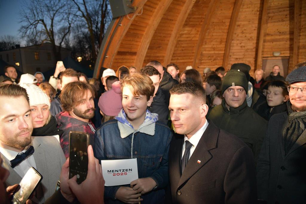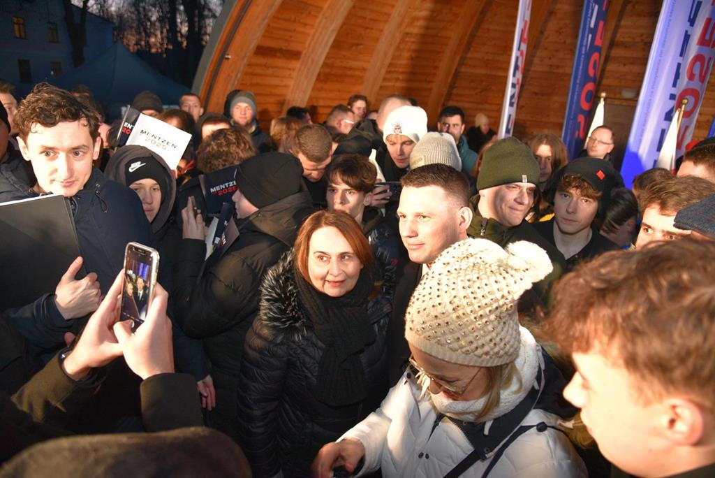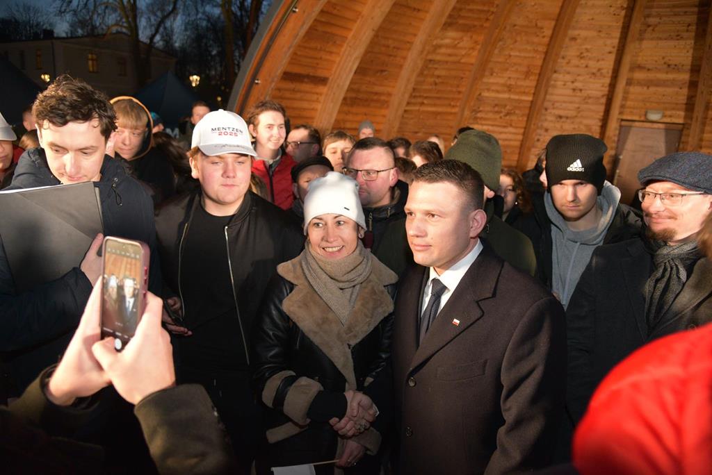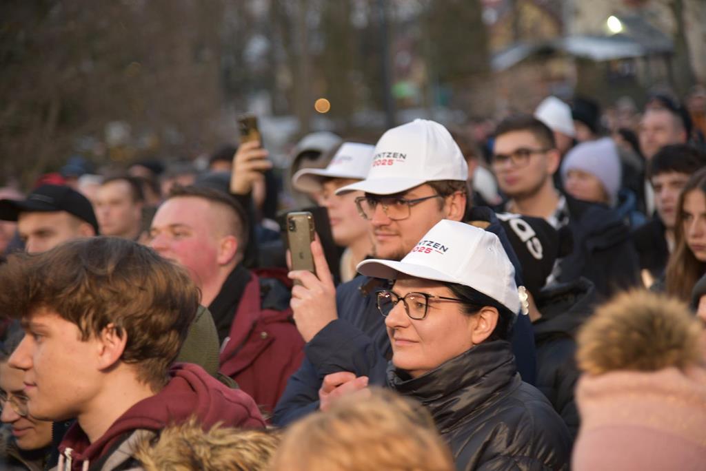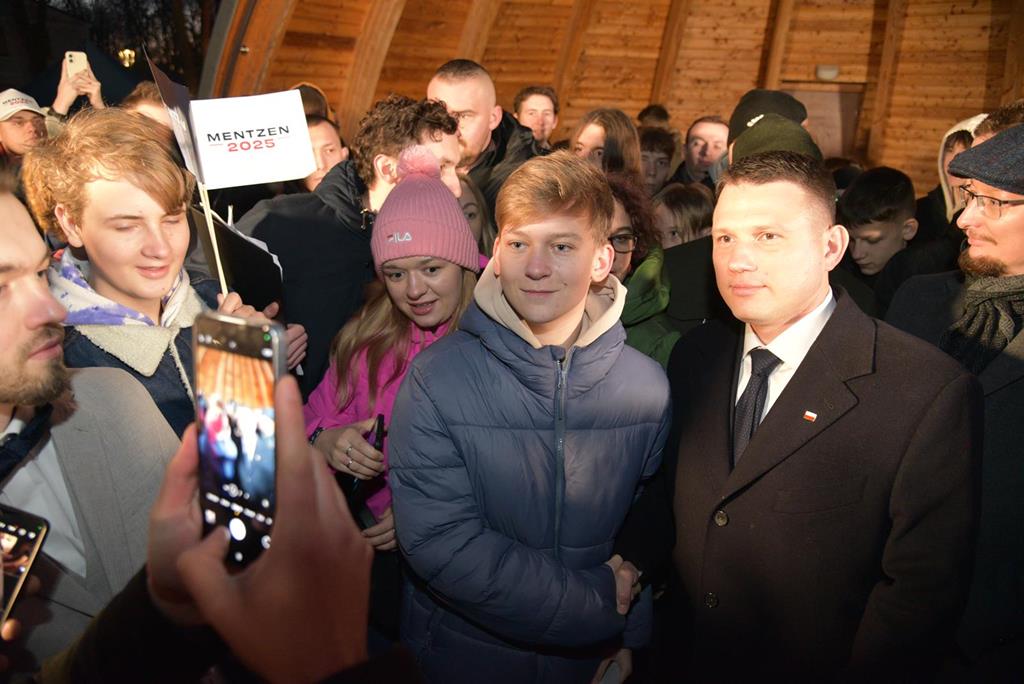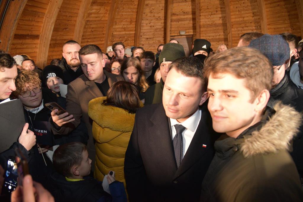Busko-Zdrój, 24.01.2025: Sławomir Mentzen, kandydat Konfederacji na prezydenta Polski spotkał się z wyborcami w Parku Zdrojowym. / fot. infoBusko.pl