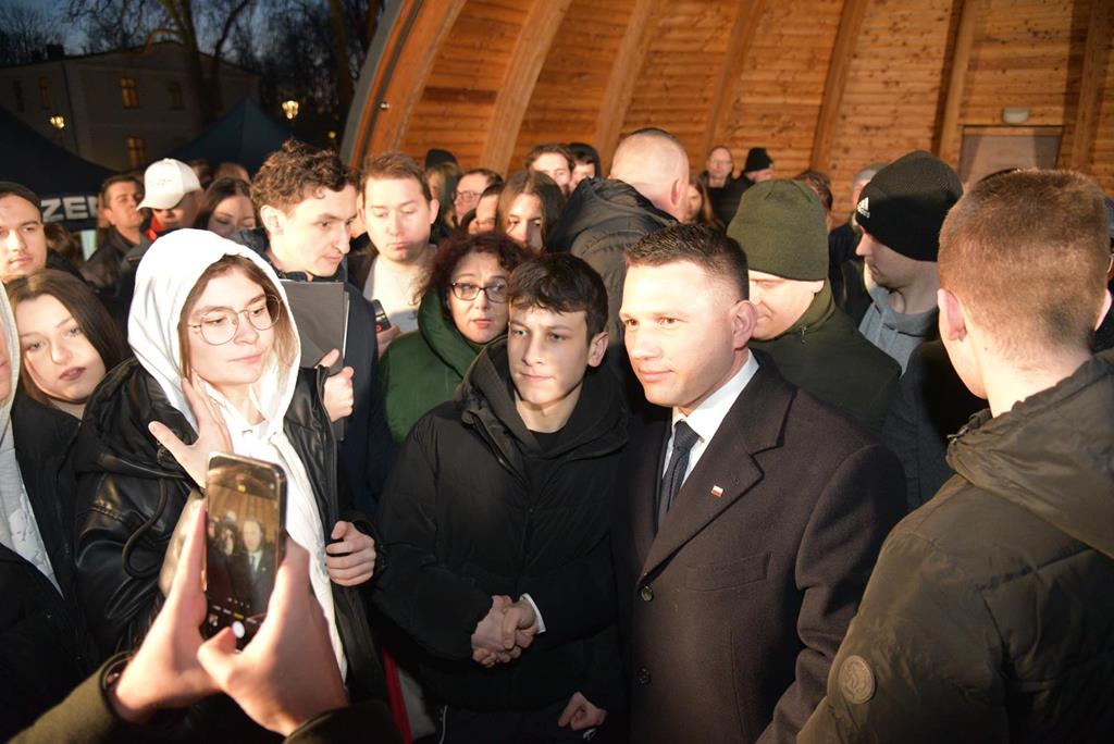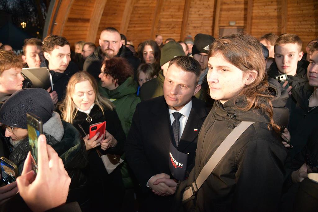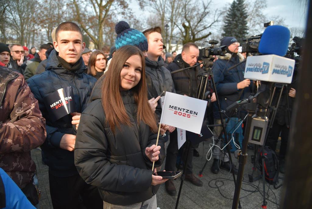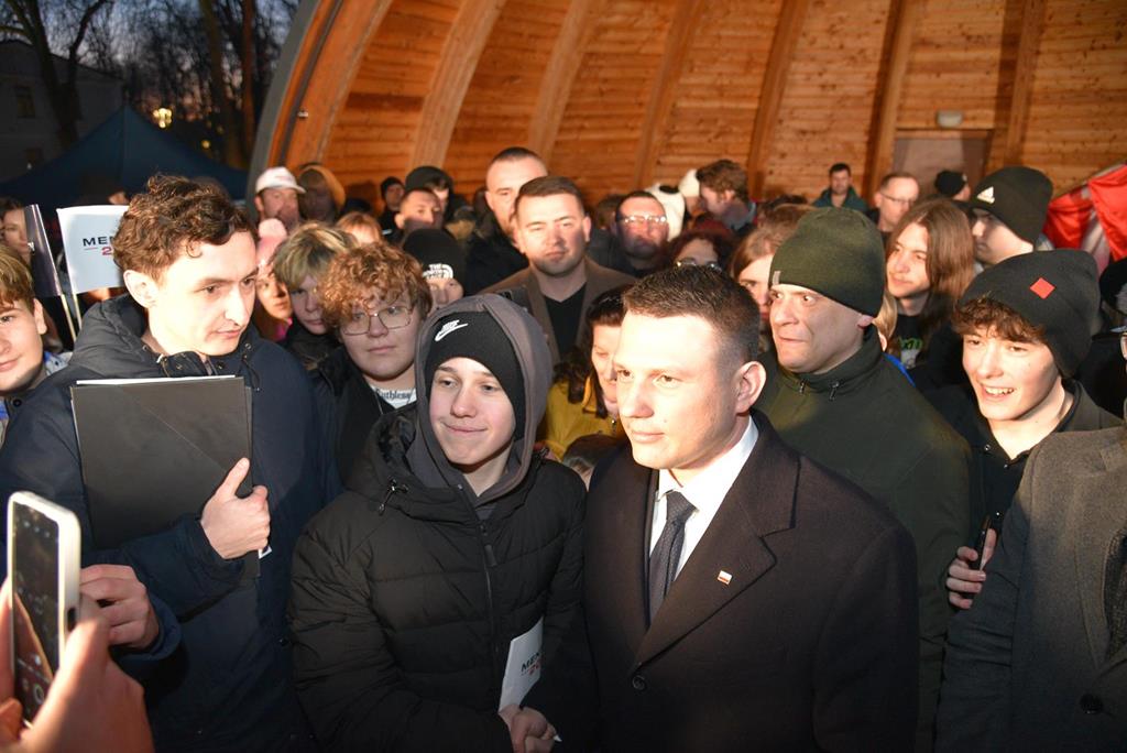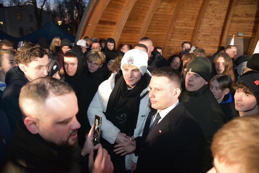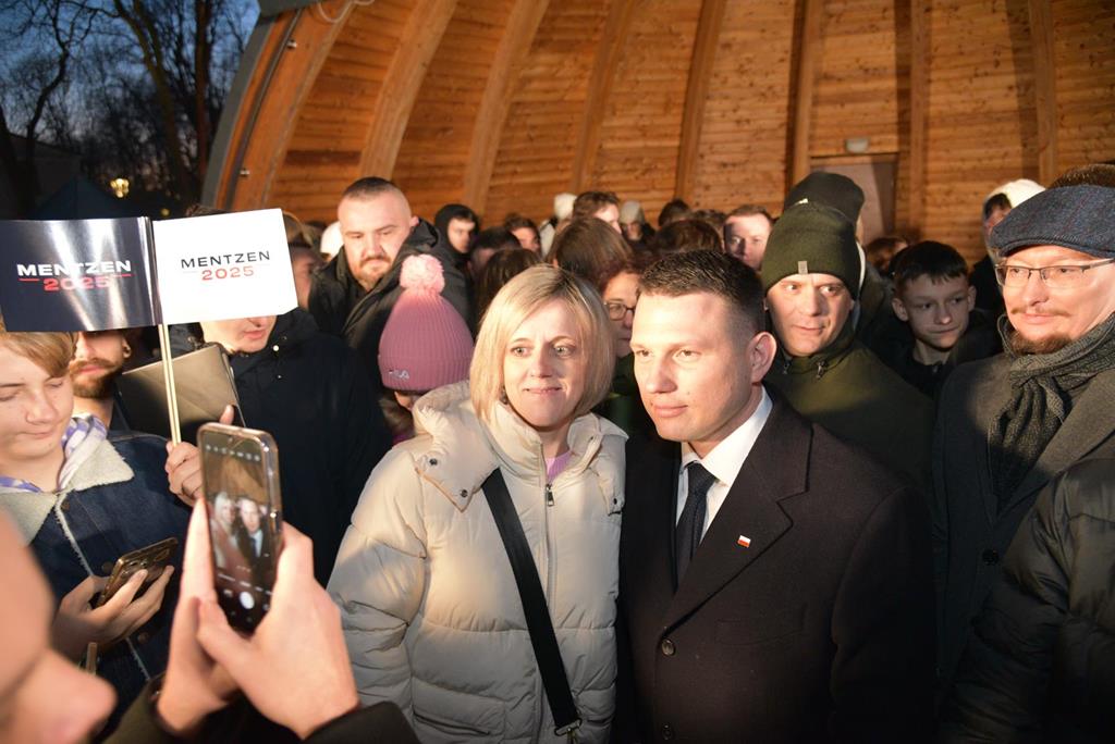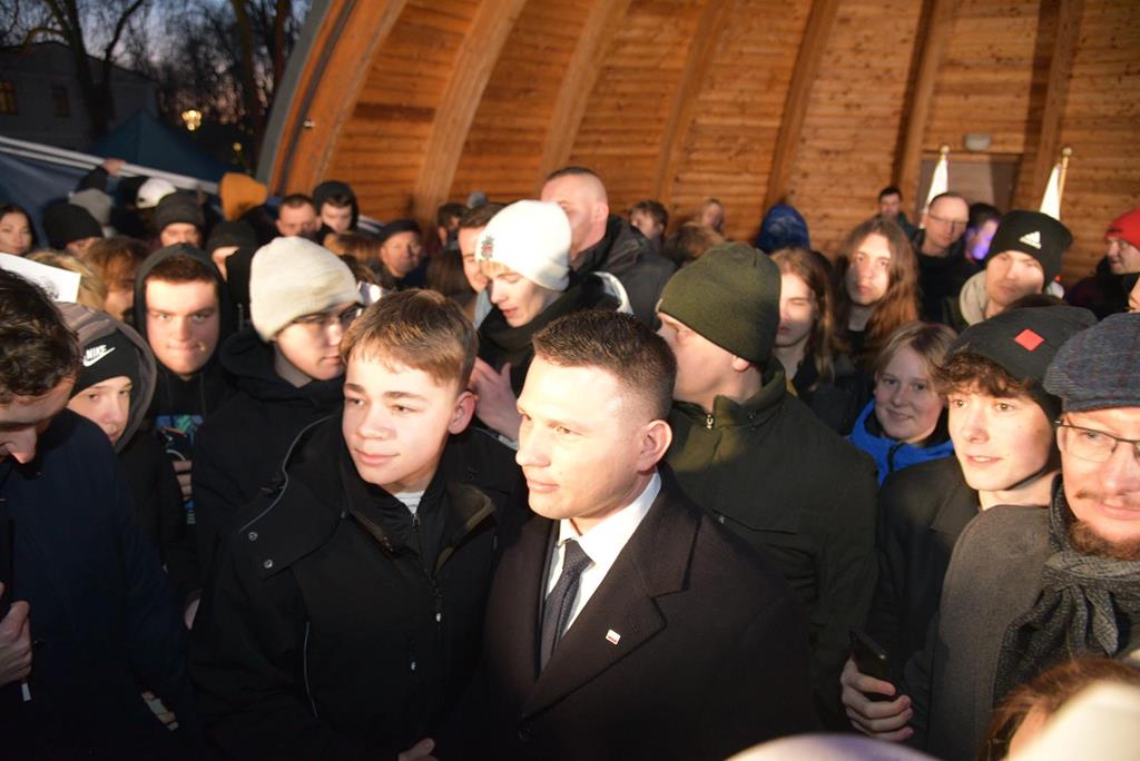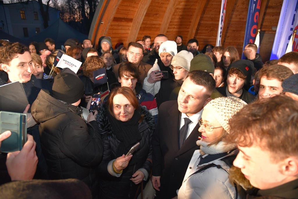 Busko-Zdrój, 24.01.2025: Sławomir Mentzen, kandydat Konfederacji na prezydenta Polski spotkał się z wyborcami w Parku Zdrojowym. / fot. infoBusko.pl