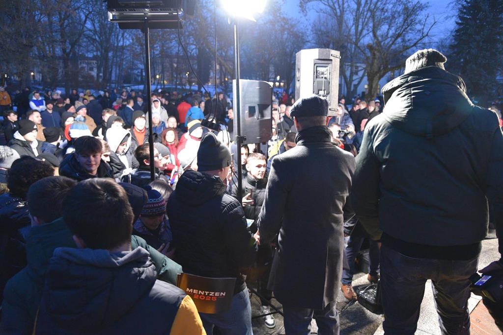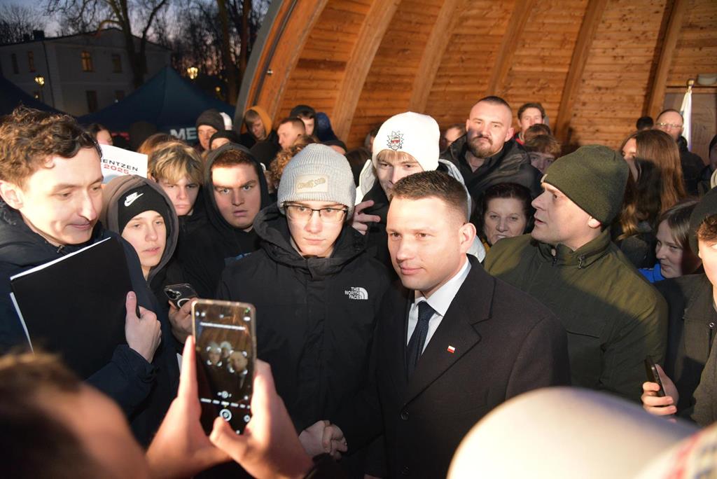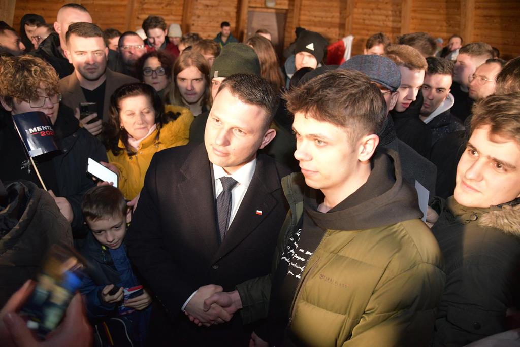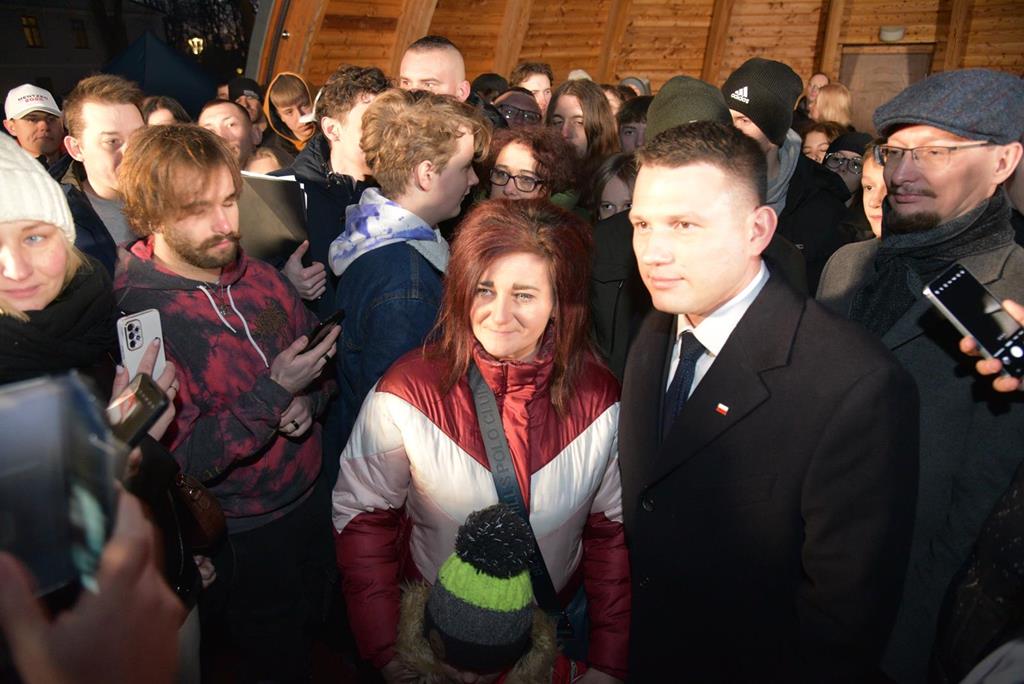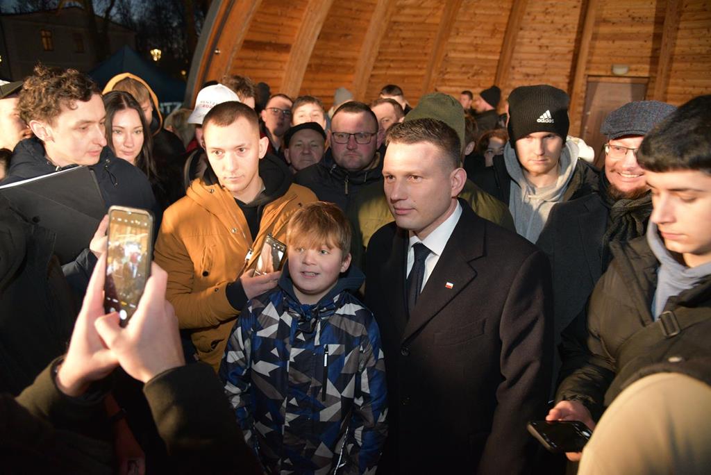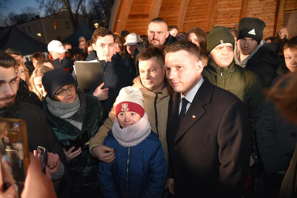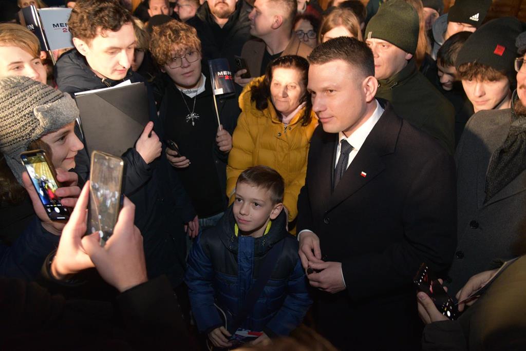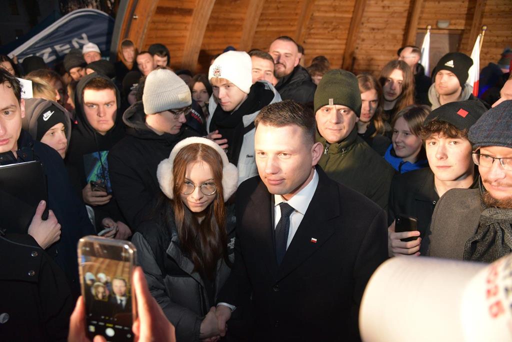 Busko-Zdrój, 24.01.2025: Sławomir Mentzen, kandydat Konfederacji na prezydenta Polski spotkał się z wyborcami w Parku Zdrojowym. / fot. infoBusko.pl