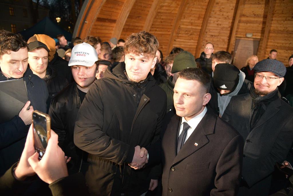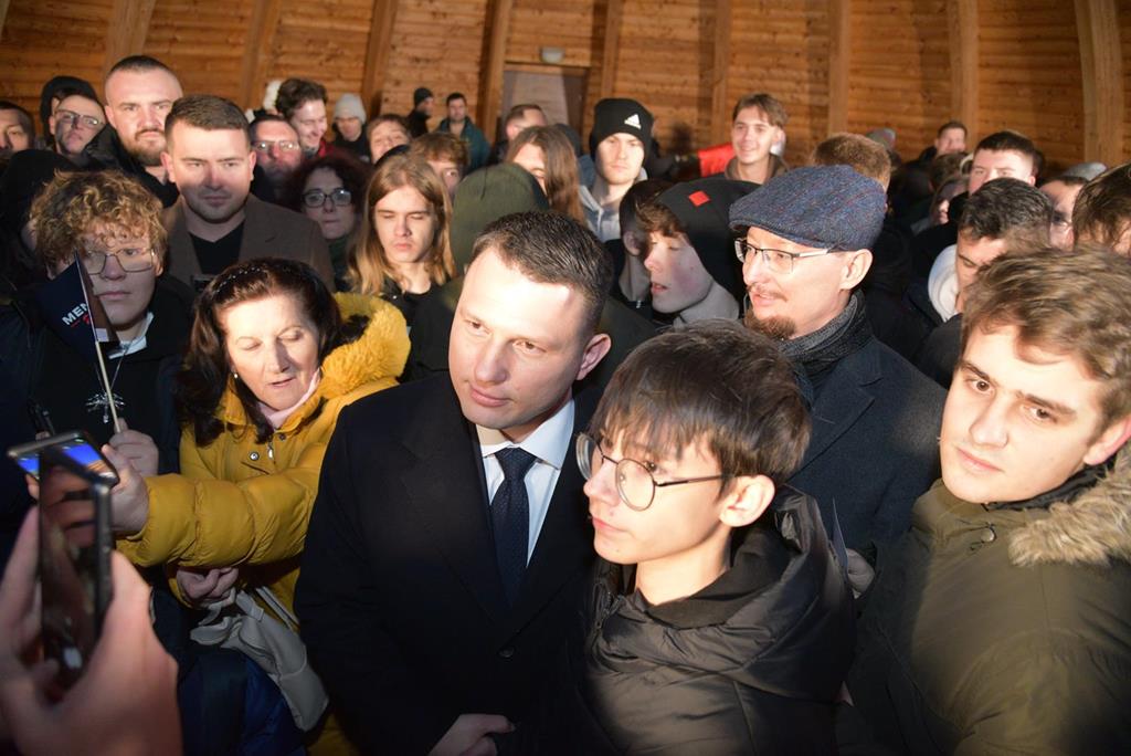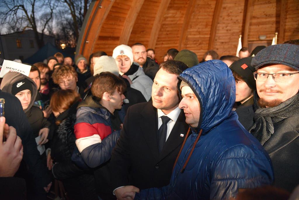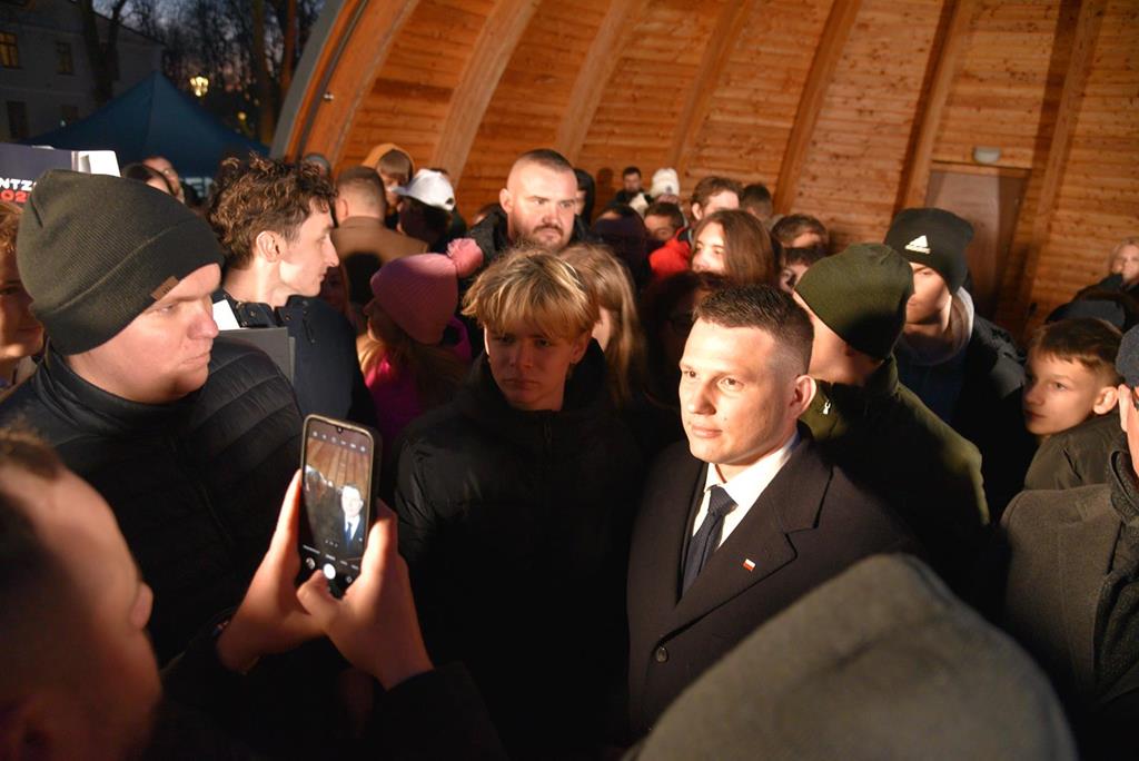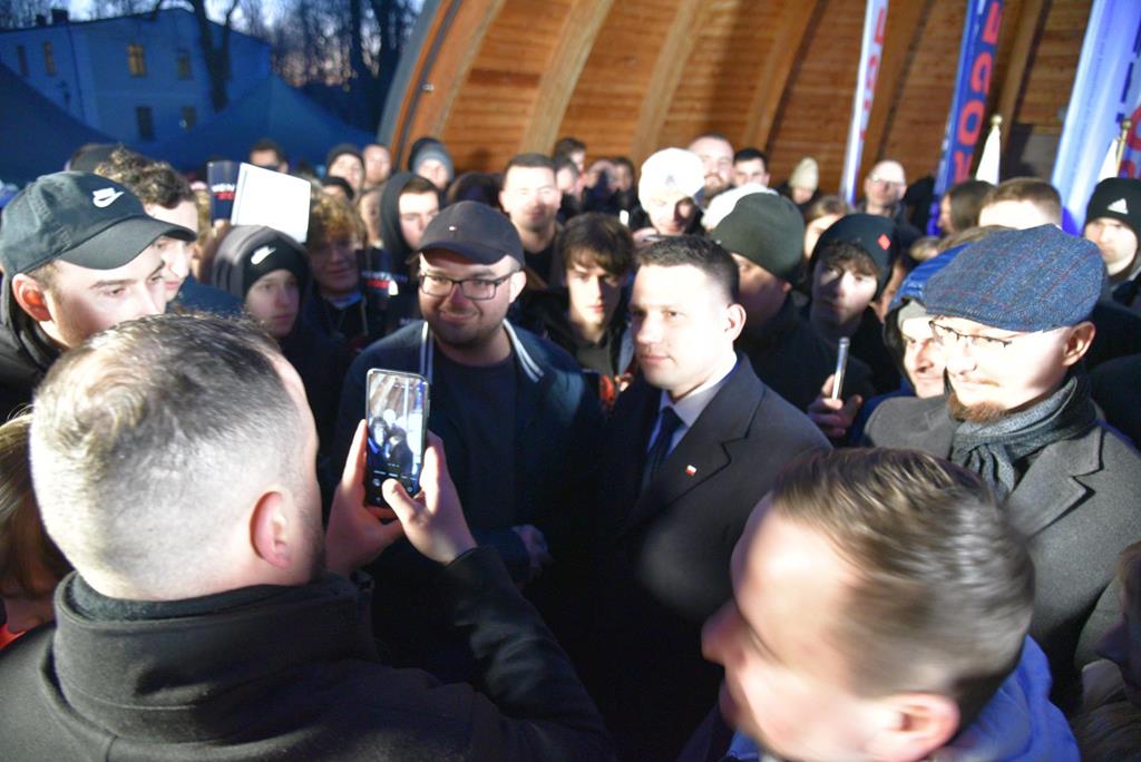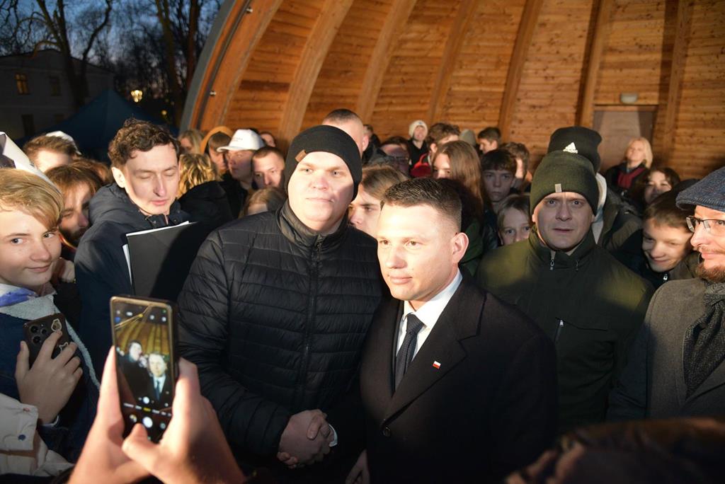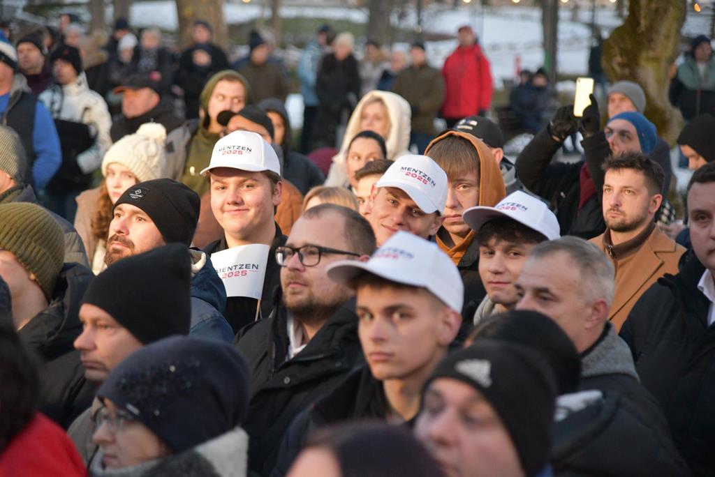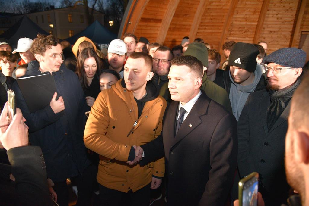 Busko-Zdrój, 24.01.2025: Sławomir Mentzen, kandydat Konfederacji na prezydenta Polski spotkał się z wyborcami w Parku Zdrojowym. / fot. infoBusko.pl