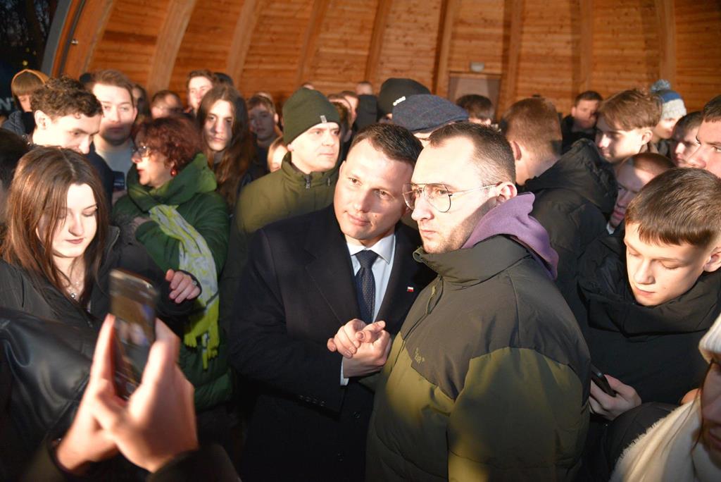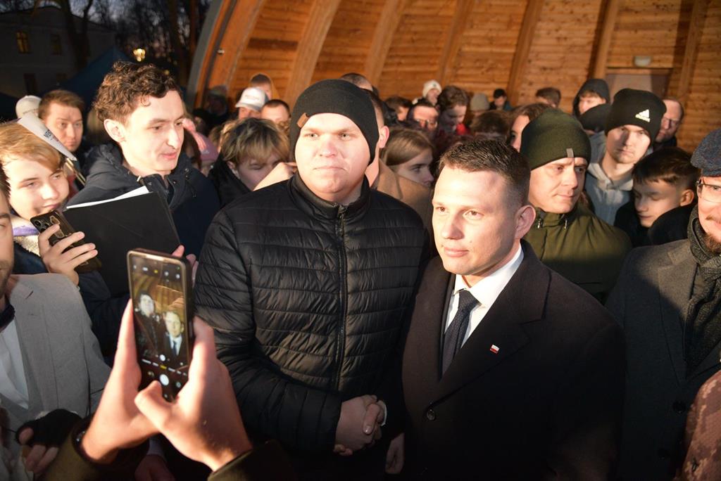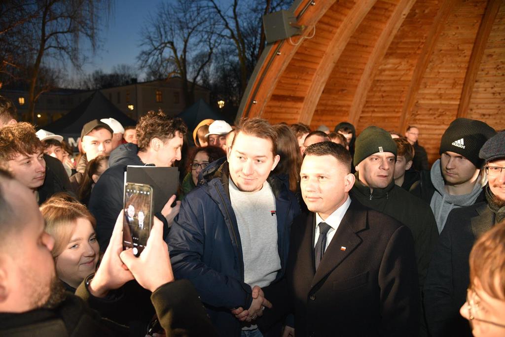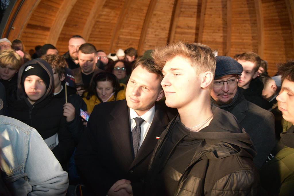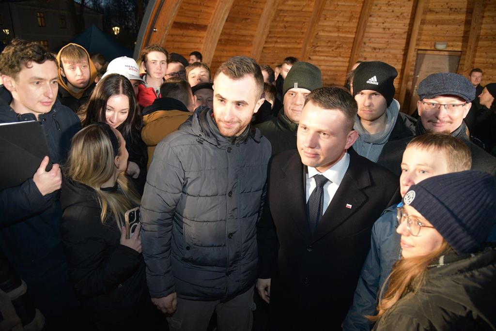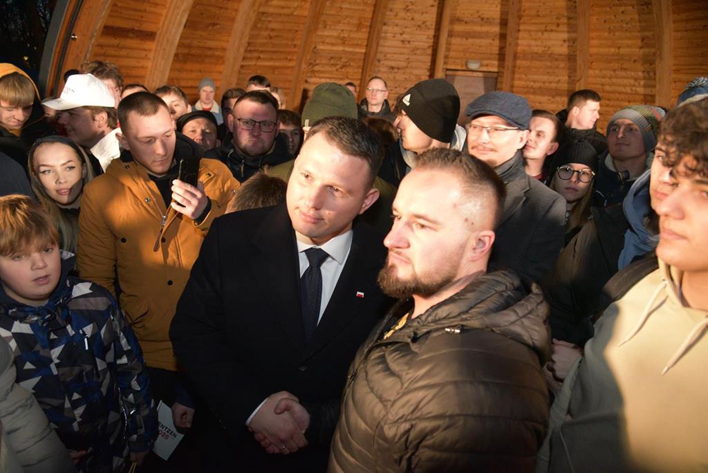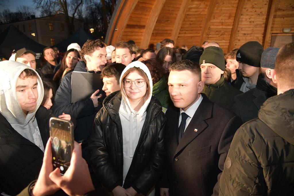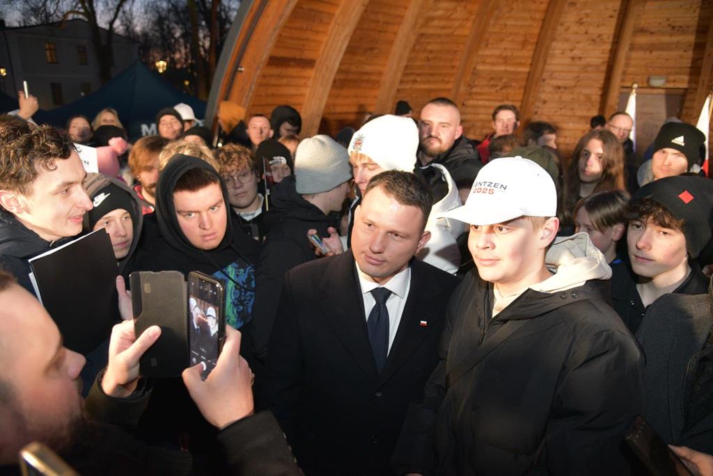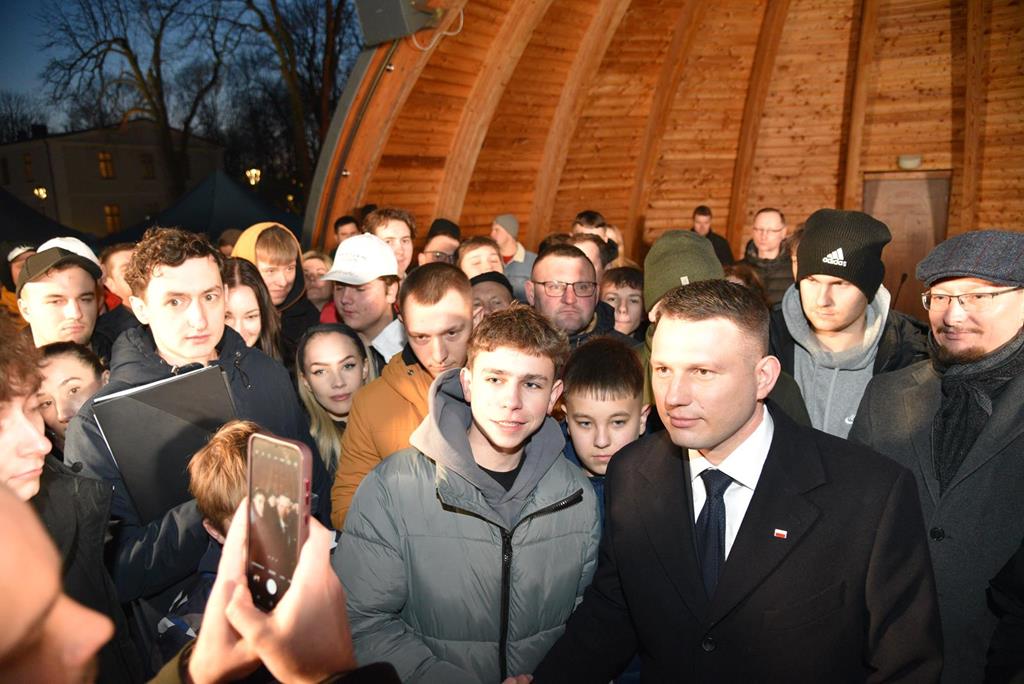Busko-Zdrój, 24.01.2025: Sławomir Mentzen, kandydat Konfederacji na prezydenta Polski spotkał się z wyborcami w Parku Zdrojowym. / fot. infoBusko.pl