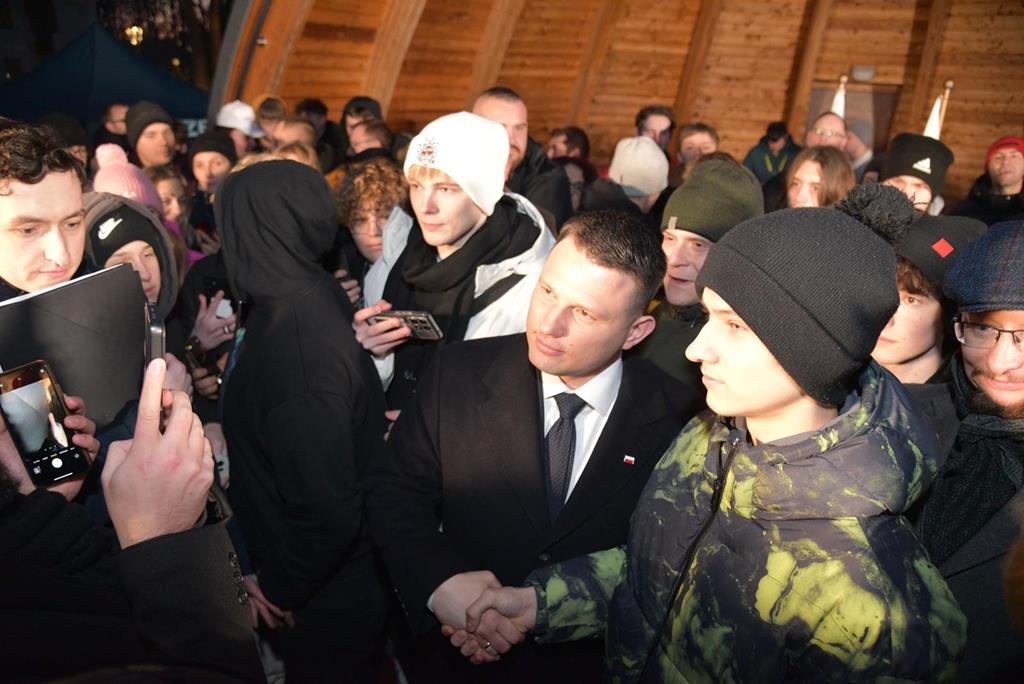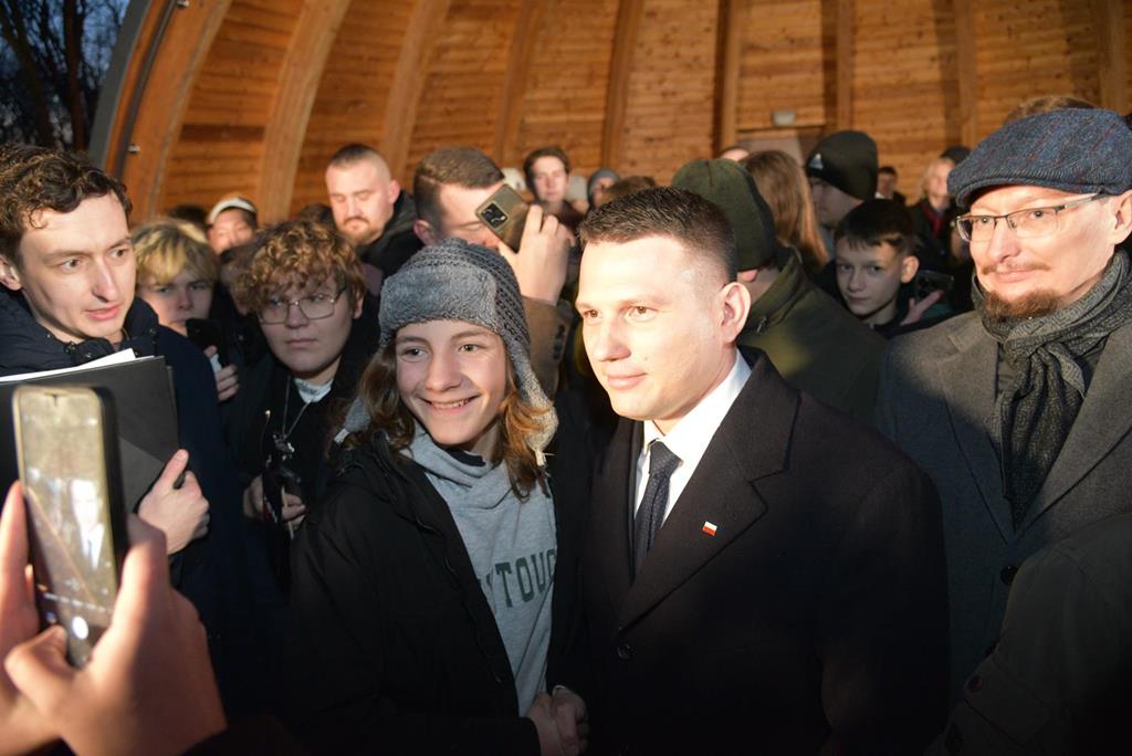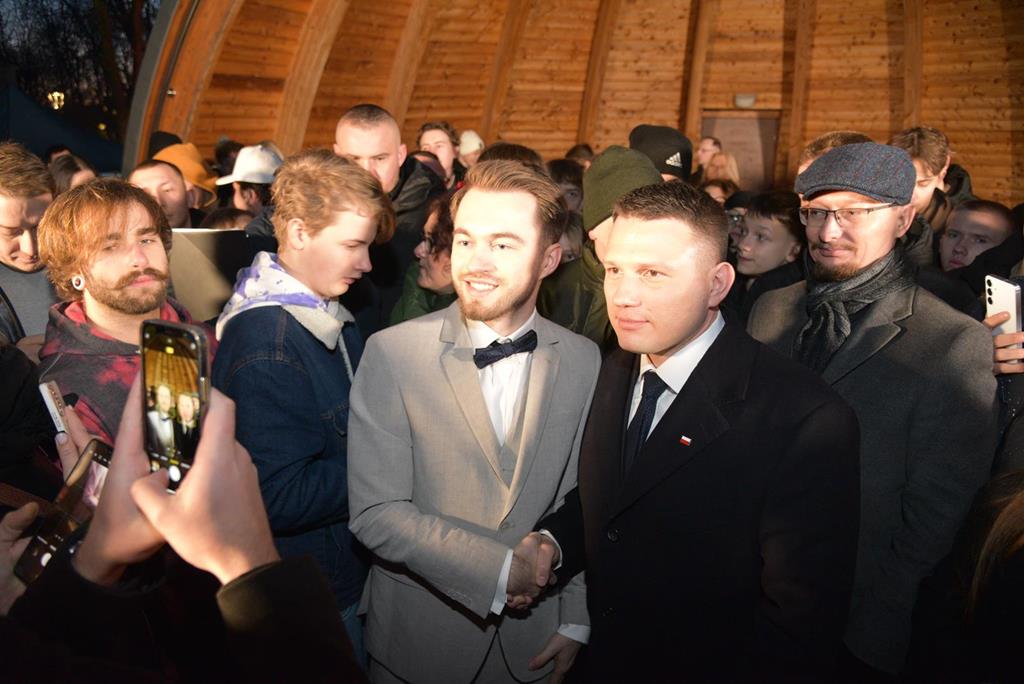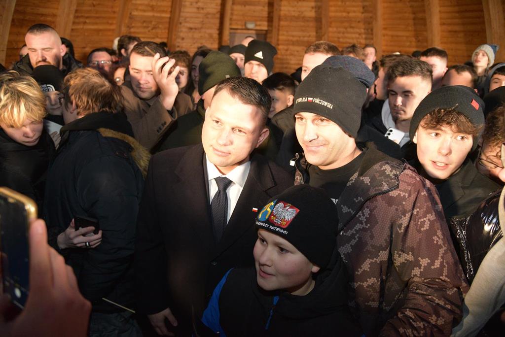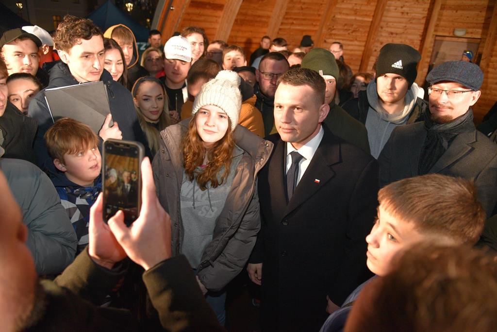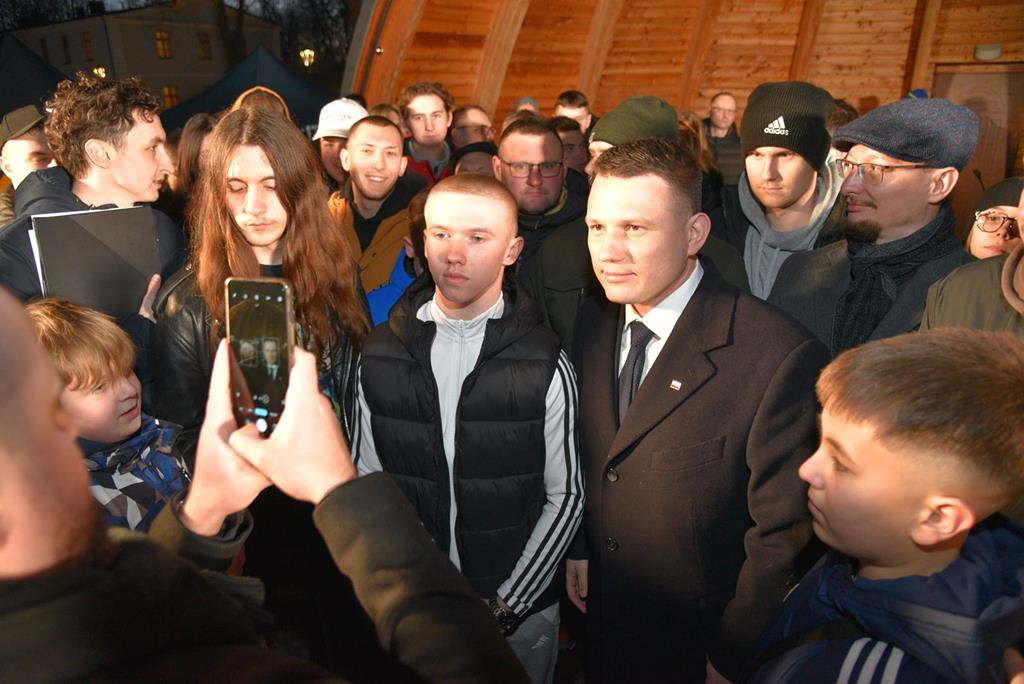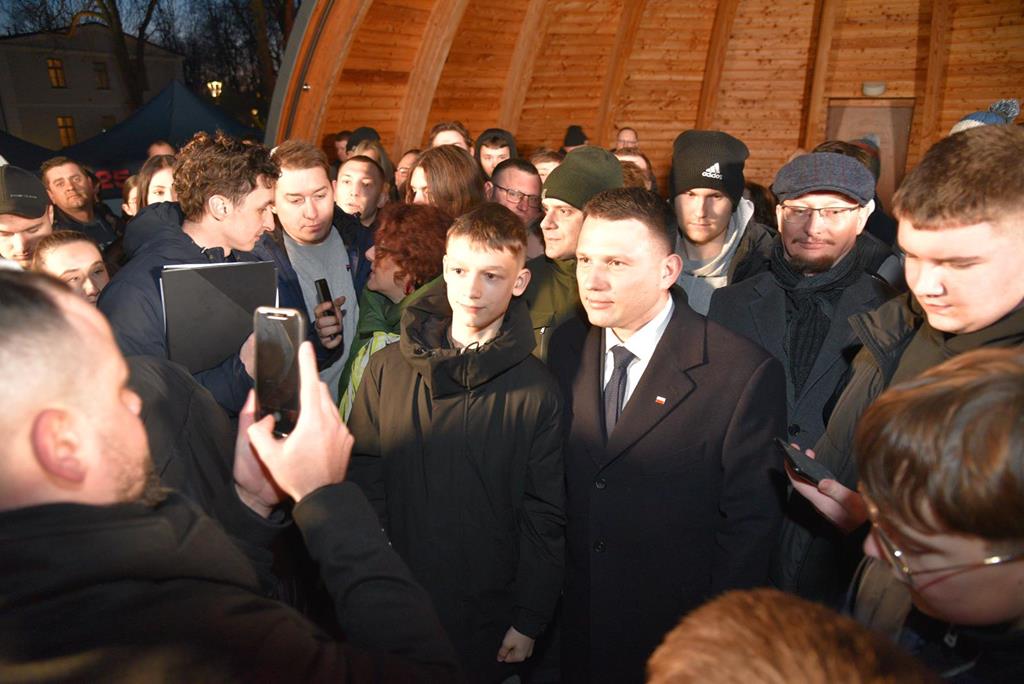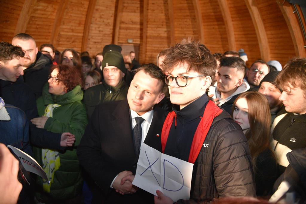 Busko-Zdrój, 24.01.2025: Sławomir Mentzen, kandydat Konfederacji na prezydenta Polski spotkał się z wyborcami w Parku Zdrojowym. / fot. infoBusko.pl