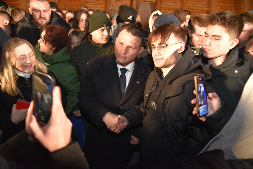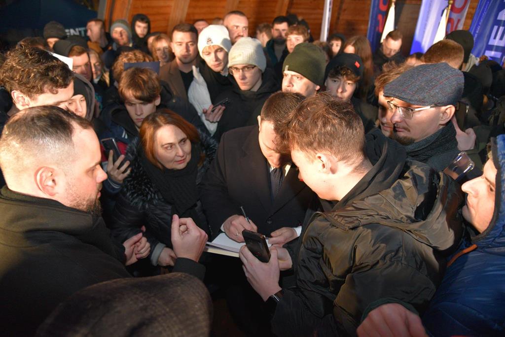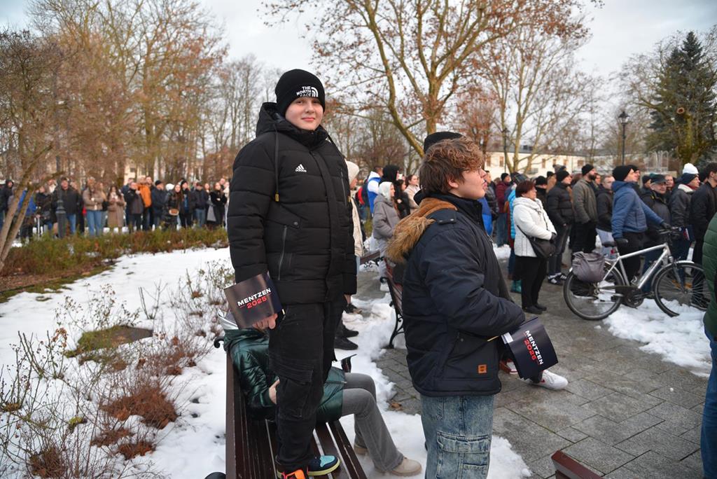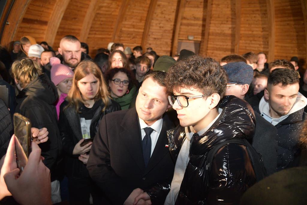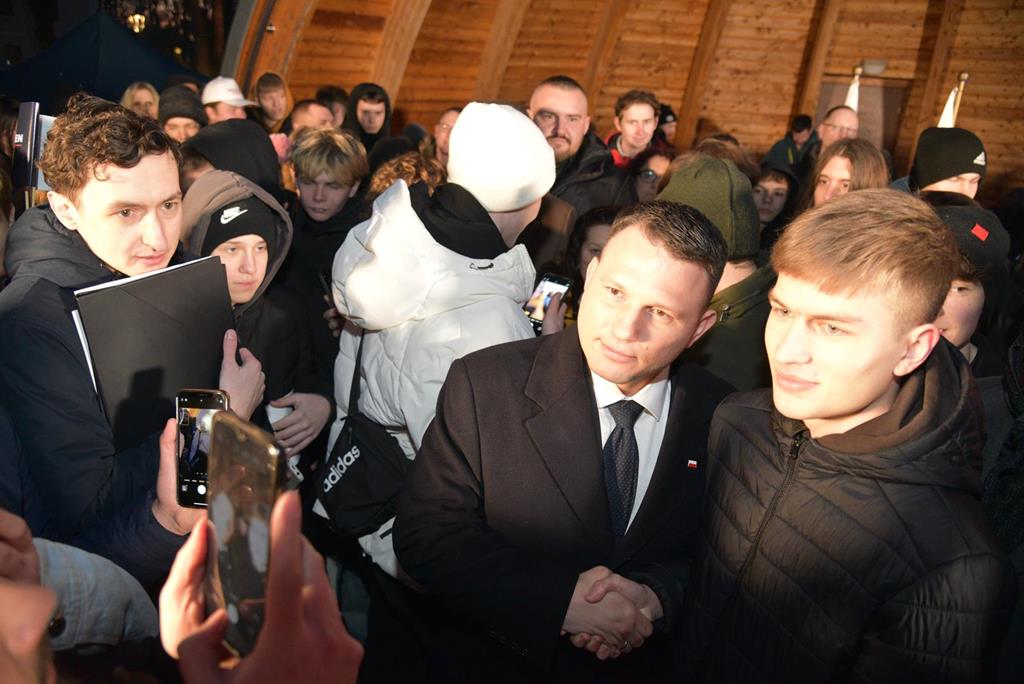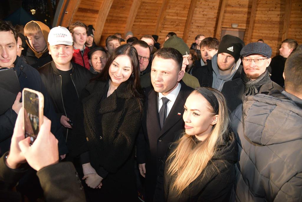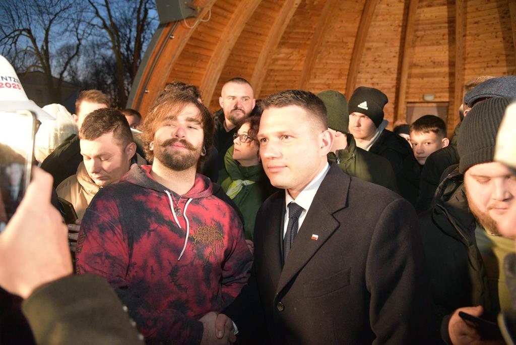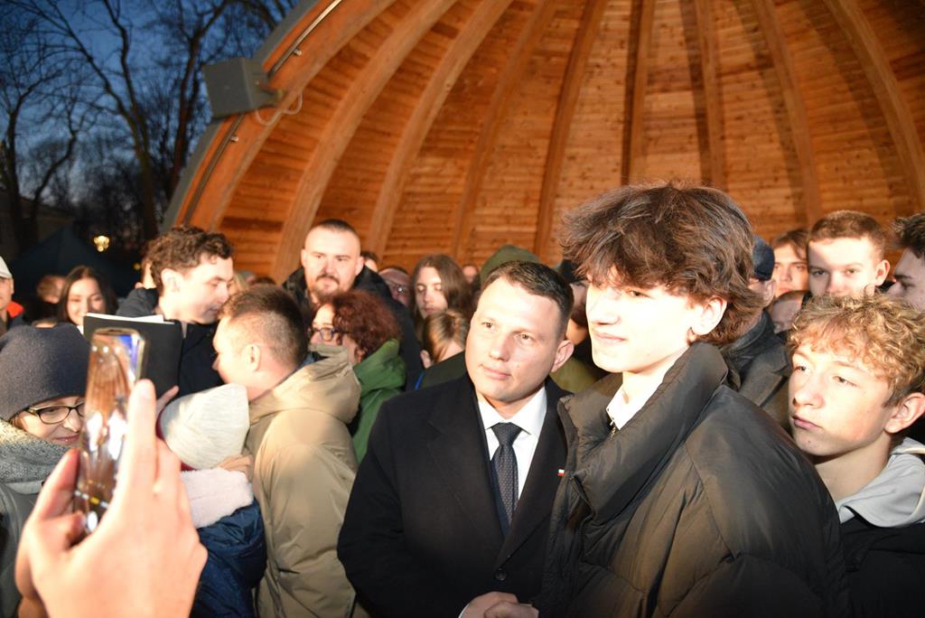 Busko-Zdrój, 24.01.2025: Sławomir Mentzen, kandydat Konfederacji na prezydenta Polski spotkał się z wyborcami w Parku Zdrojowym. / fot. infoBusko.pl