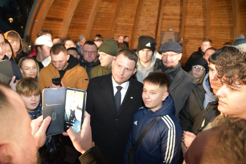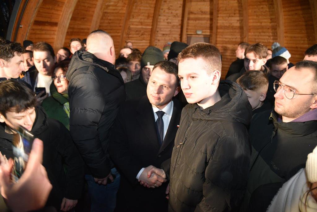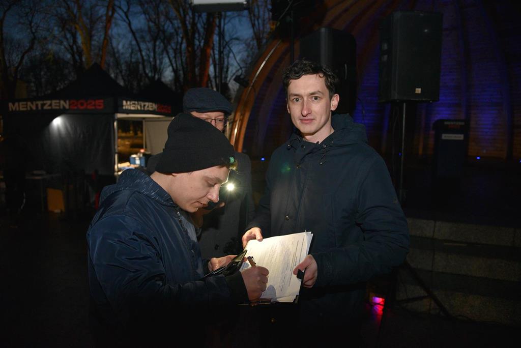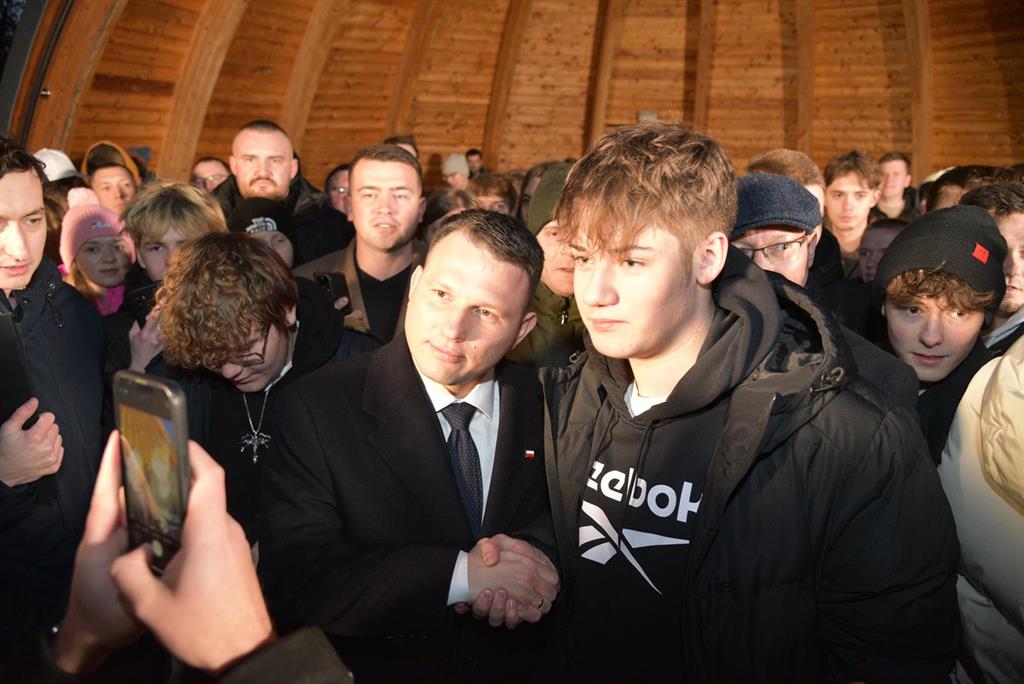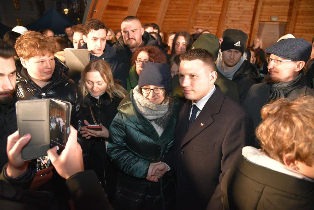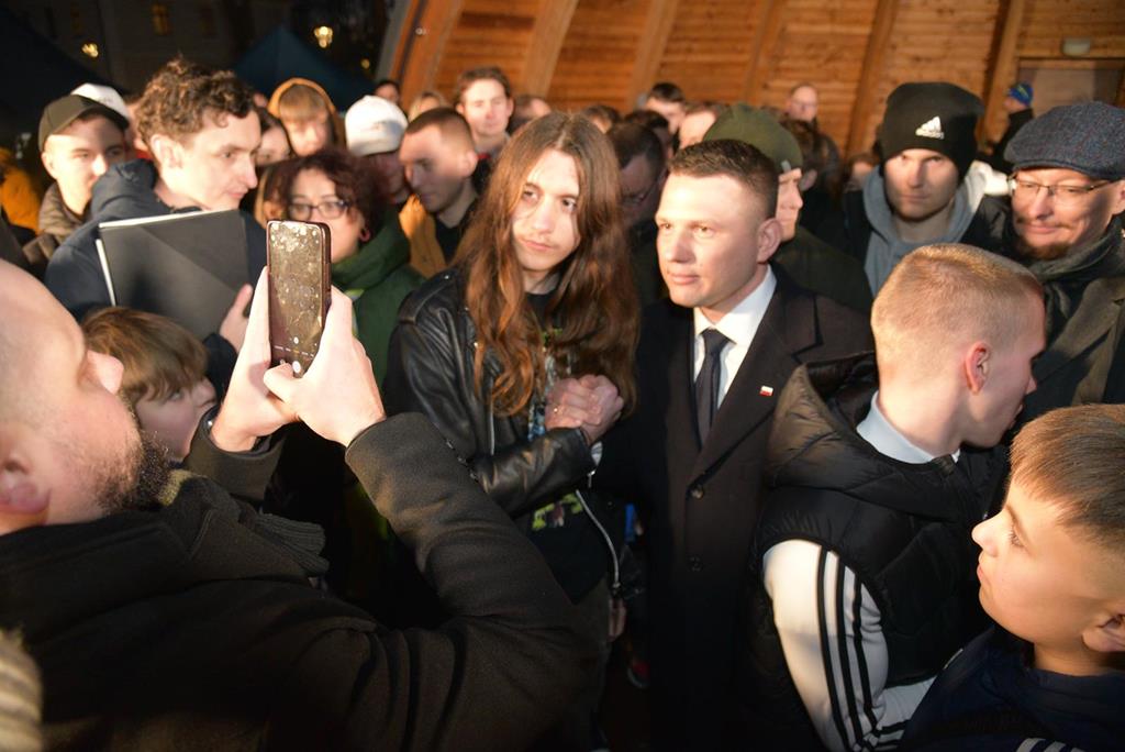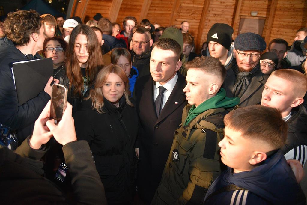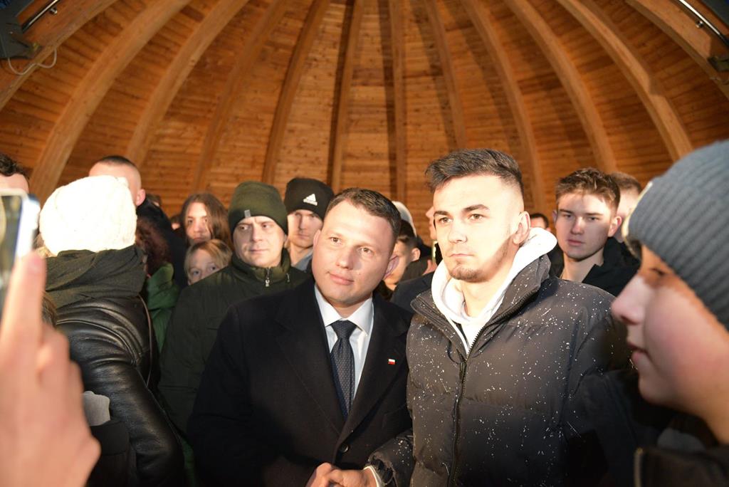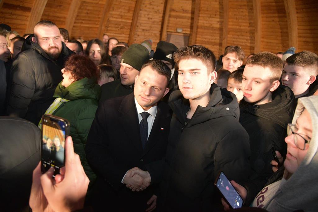 Busko-Zdrój, 24.01.2025: Sławomir Mentzen, kandydat Konfederacji na prezydenta Polski spotkał się z wyborcami w Parku Zdrojowym. / fot. infoBusko.pl