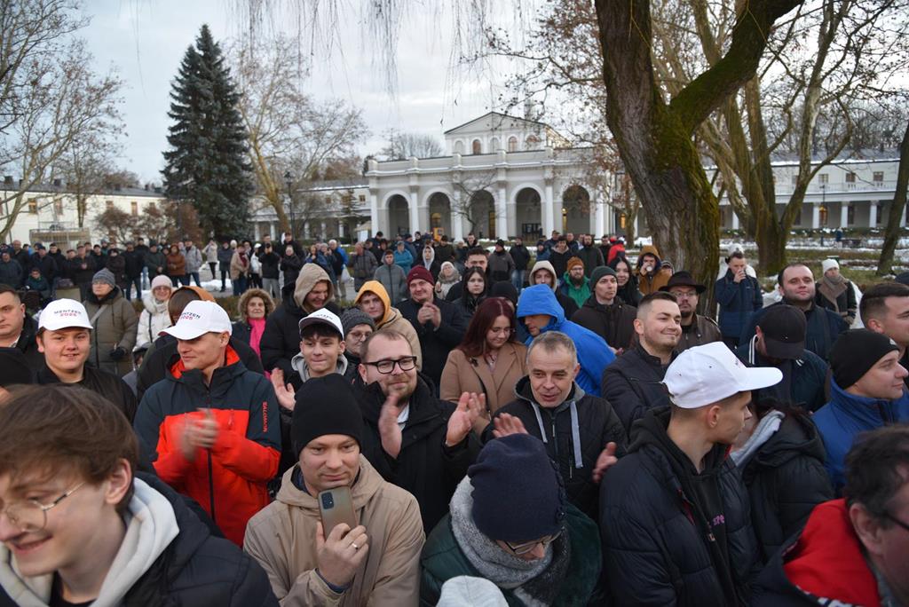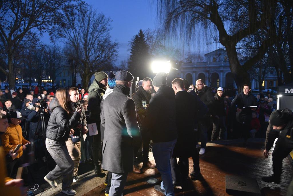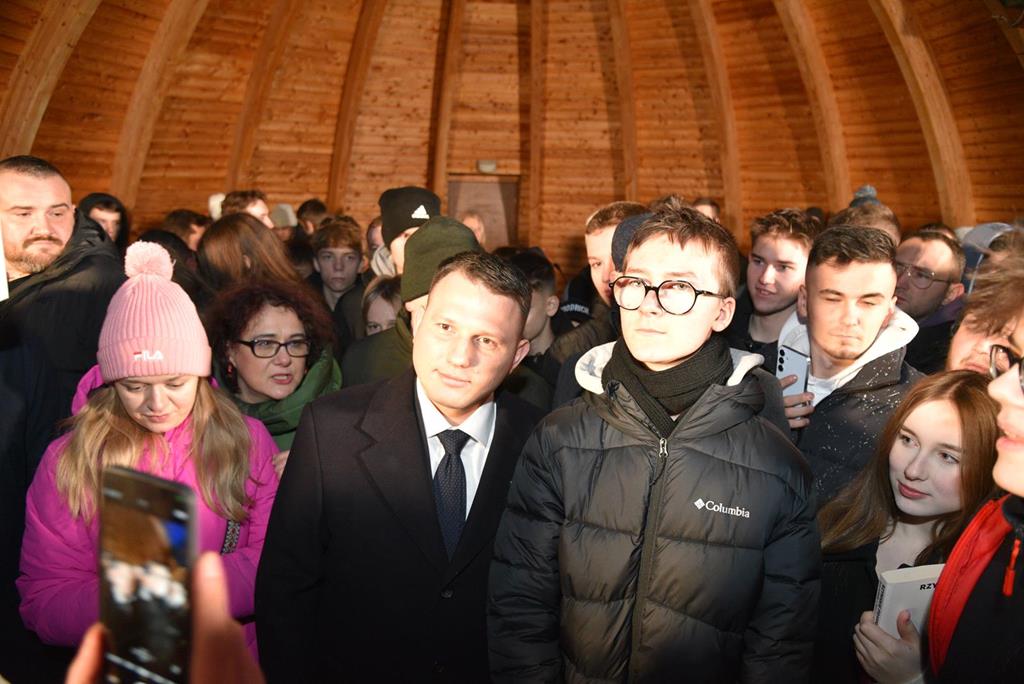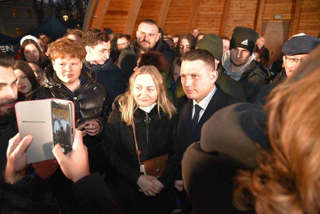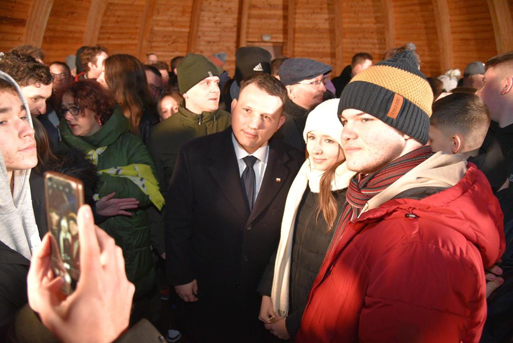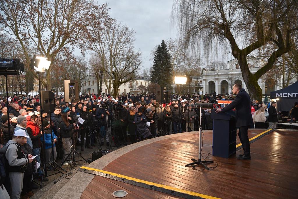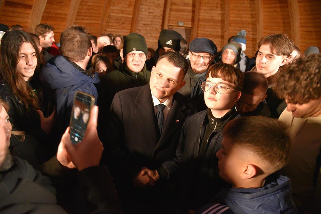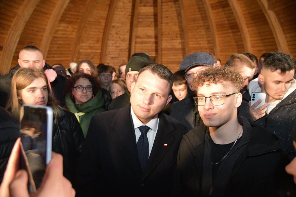 Busko-Zdrój, 24.01.2025: Sławomir Mentzen, kandydat Konfederacji na prezydenta Polski spotkał się z wyborcami w Parku Zdrojowym. / fot. infoBusko.pl