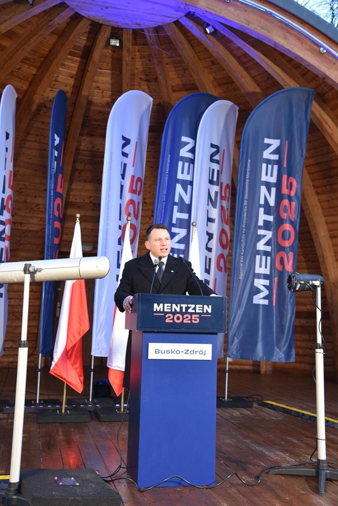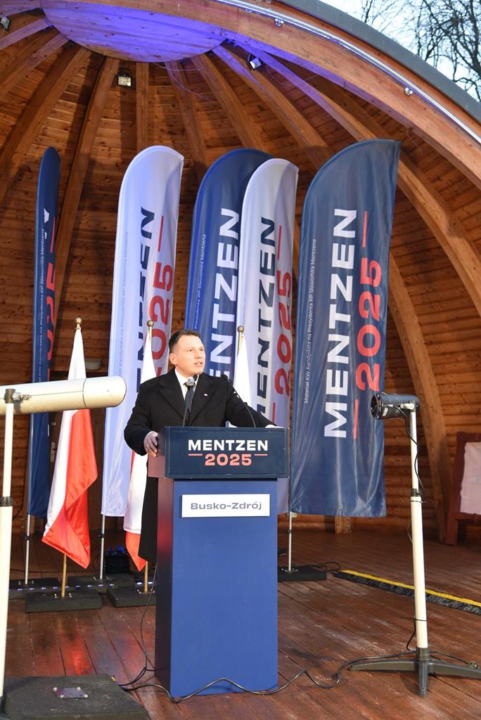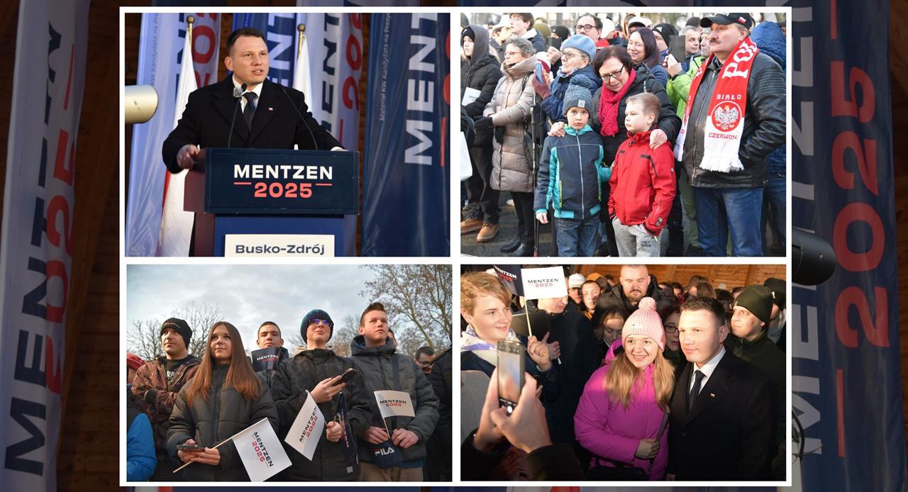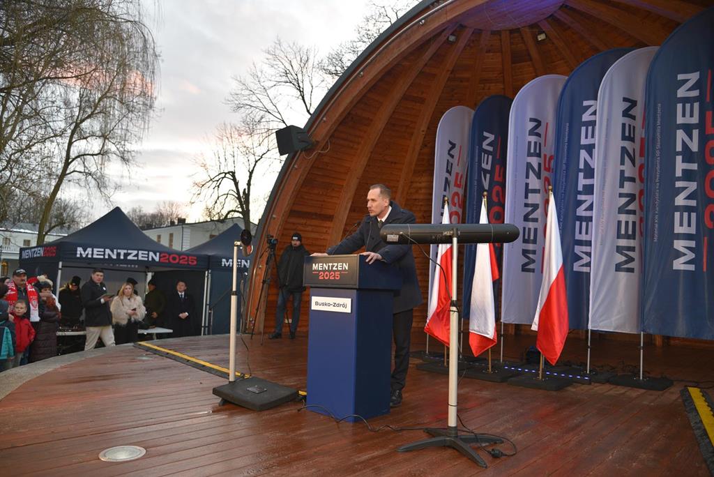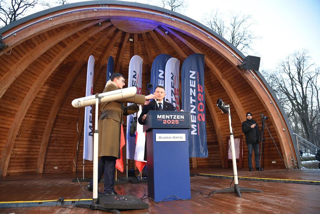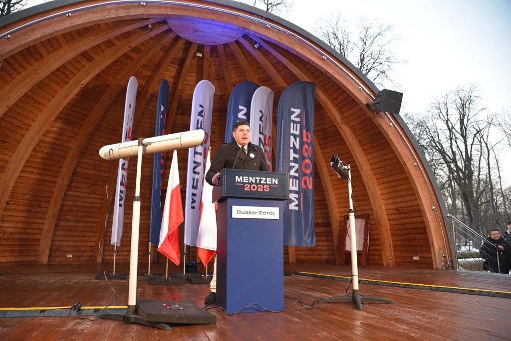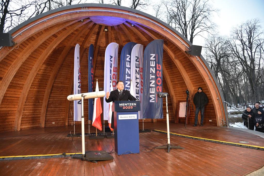 W piątkowe popołudnia, 24 stycznia 2025 r., Busko-Zdrój odwiedził kandydat Konfederacji w wyborach prezydenckich 2025,  Sławomir Mentzen. Otwarte spotkanie odbyło się przy muszli koncertowej w centrum Parku Zdrojowego. W około godzinnej prezentacji wyborczej uczestniczyła duża grupa mieszkańców, kuracjuszy i sympatyków 38-letniego polityka prawicy– informuje 24.01.2025 portal Echo Dnia