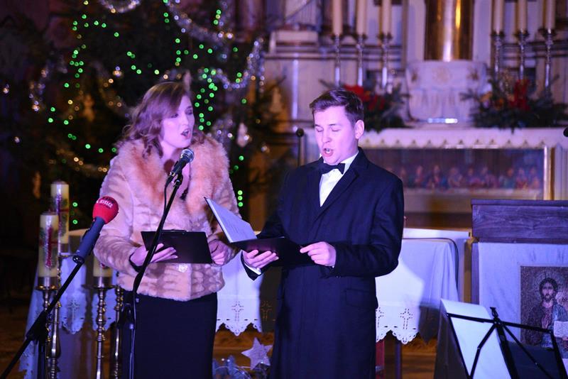 Znane kolędy w operowych aranżacjach wykonali studenci Akademii Muzycznej im. Karola Szymanowskiego w Katowicach. Zaśpiewali sopranistka Marta Wąs i baryton Michał Jewiarz, a na fortepianie zagrał Jarosław Mrożek.