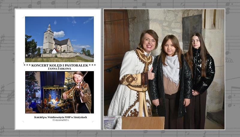 ○ 15 stycznia 2023, kościół pw. Wniebowzięcia Najświętszej Marii Panny w Strożyskach: Noworoczny koncert kolęd i pastorałek w wykonaniu Żanny Żarkowej (ang. Zhanna Zharkova)’, Blanki Pytlik i Roksany Gwóźdź. / fot. Jarosław Kruk infoBusko.pl | Tomanek, Wikipedia♂
