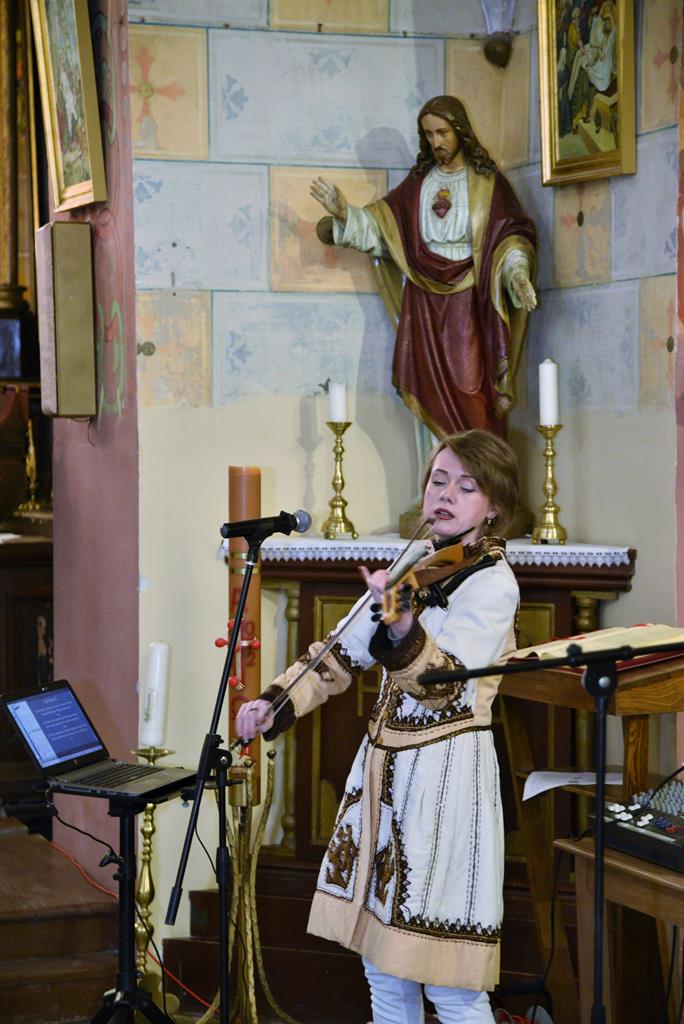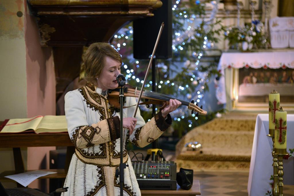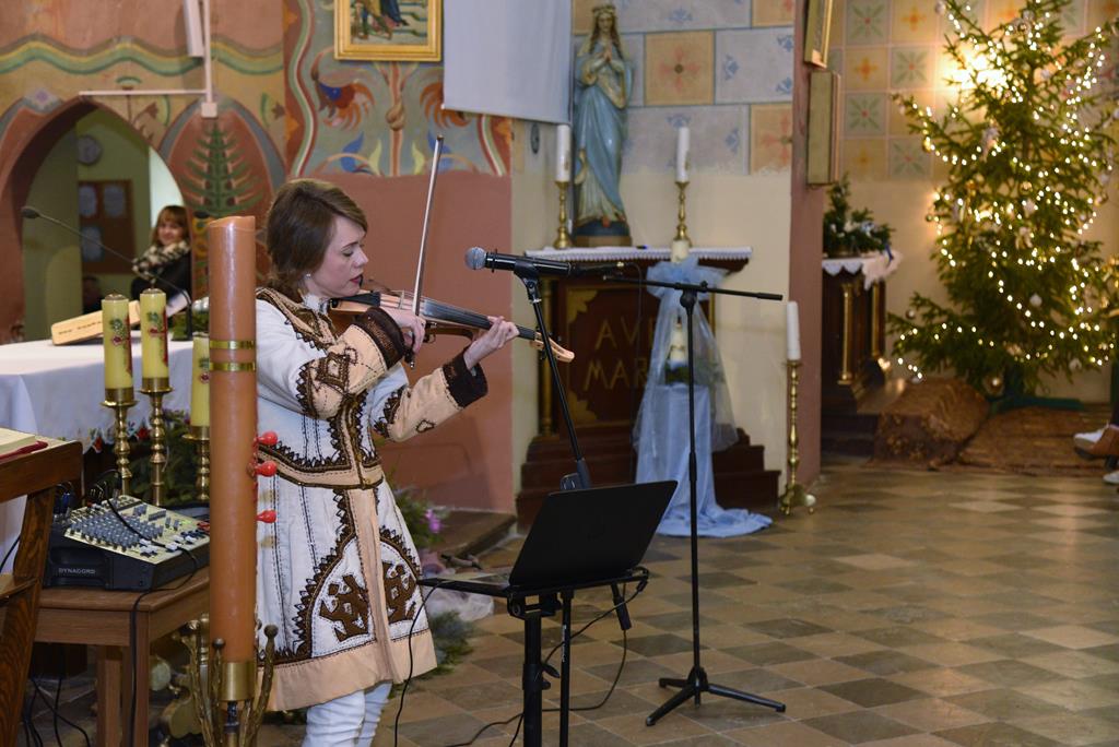 Tym razem u ks. proboszcza Marka Wesołowskiego’ bożonarodzeniowy klimat skrzypcami i głosem wyczarowała Żanna Żarkowa’ z Ukrainy.