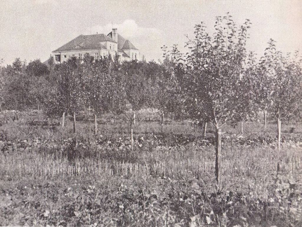 2. Sanatorium dzięcięce w Busku-Zdroju „Górka” – budynek i młody sad na południowym stoku wzniesienia, ok. 1926