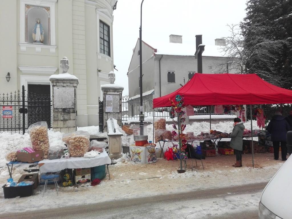 Rację sprzedawcy również dostrzegam: – jak pamiętam, chyba zawsze, 8 grudnia, w dniu święta patronalnego Parafii NPNMP w Busku-Zdroju, na przylegającym do świątyni fragmencie ulicy odbywał się odpustowy kiermasz. Na niezbyt szerokim pasażu sprzedawcy ustawiali kramy z odpustowymi „atrakcjami”. W dodatku, wydaje mi się, że chyba zawsze stały one na chodniku – całym lub fragmencie – gdyż od strony kościoła jest skarpa ziemna i nie sposób na niej ustawić stoisko. Podobnie było – jak rozumiem – i tym razem, 8.12.2023.
