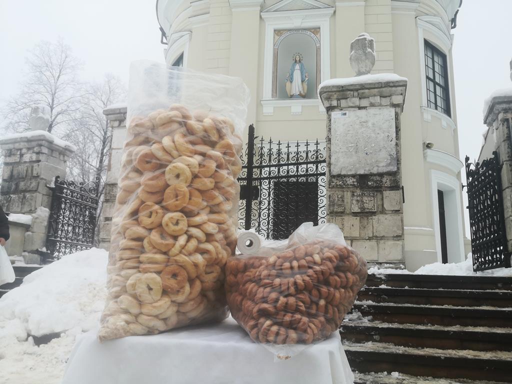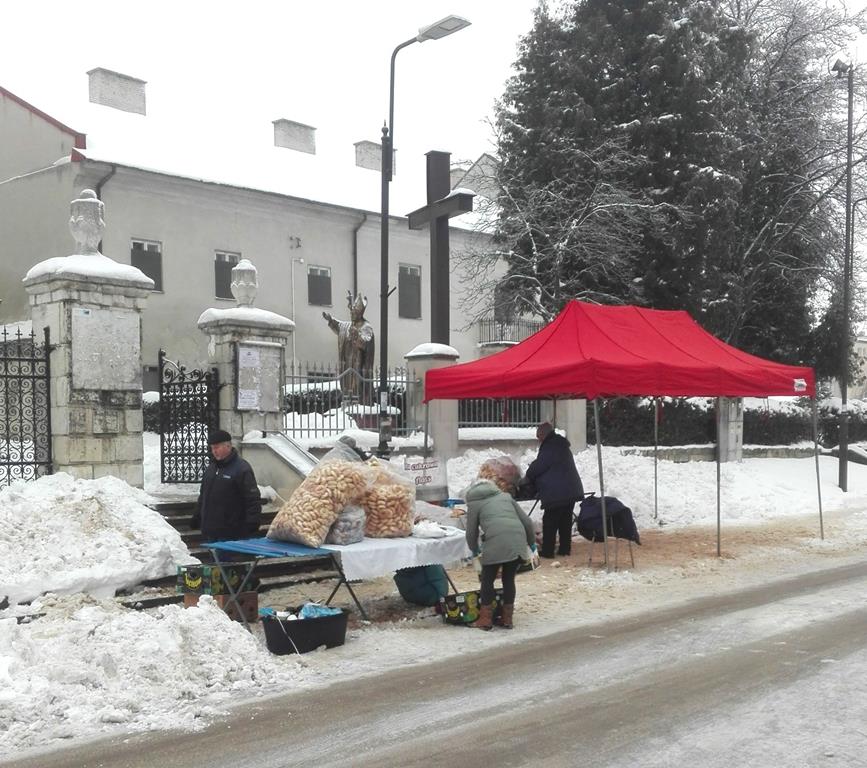 Tak było też i w ten piątek, 8.12.2023 o godzinie 14:00. Wcześniej, przed południem opublikowałem na infoBusko.pl artykuł I ❤ BZ: 8 grudnia, Święto w najstarszej buskiej parafii Niepokalanego Poczęcia Najświętszej Maryi Panny. Dlatego przejeżdżając kilka godzin później obok kościoła NPNMP, gdy dostrzegłem jeden jedyny stolik z odpustowymi obarzankami przystanąłem by sfotografować ten odpustowy „samotny biały żagiel”, znak czasu, który nie tylko mnie kojarzy się z odpustem… Myślałem, że z uwagi na aurę, jest to jedyny sprzedawca, który pojawił się przy świątyni w dniu jej patronalnego święta. Okazuje się, że wcześniej był jeszcze jeden stragan. Był, ale jak czytam, nie zagrzał miejsca zbyt długo, ok godziny 11:00 się zbył…