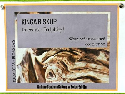 Gminne Centrum Kultury w Solcu-Zdroju: „Drewno – to lubię” – wernisaż pierwszej autorskiej wystawy prac Kingi Biskup – 10.04.2026 godz.17:00