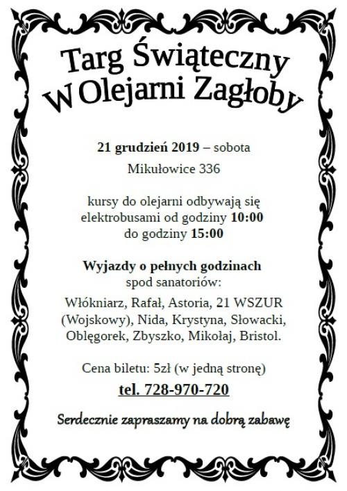 Targ świąteczny w Olejarni Zagłoby – sobota – 21 grudnia 2019