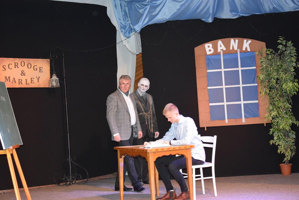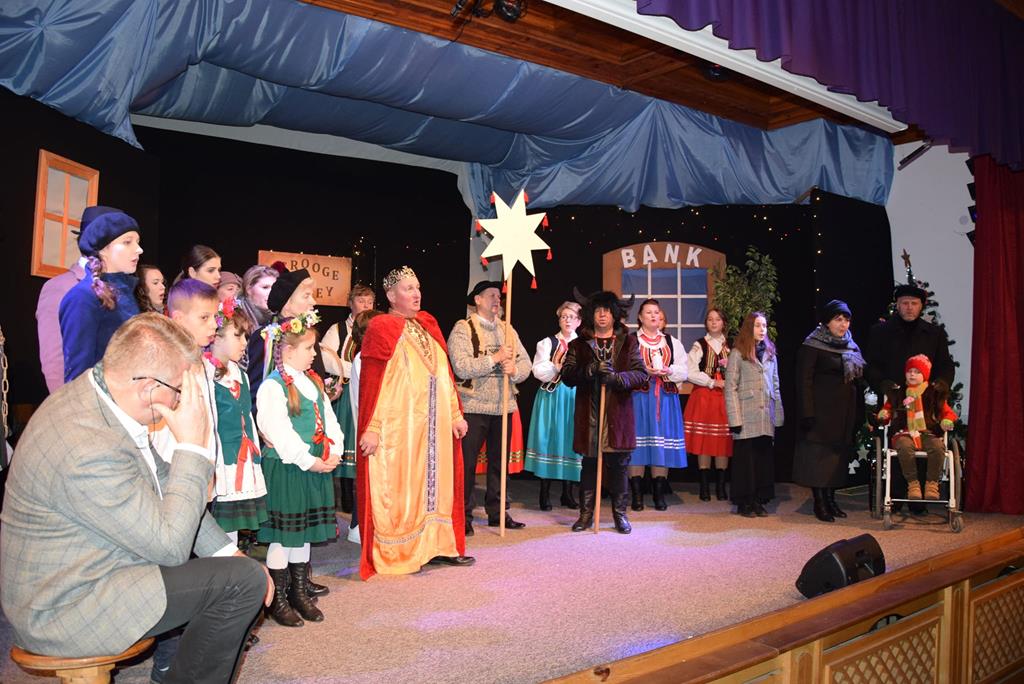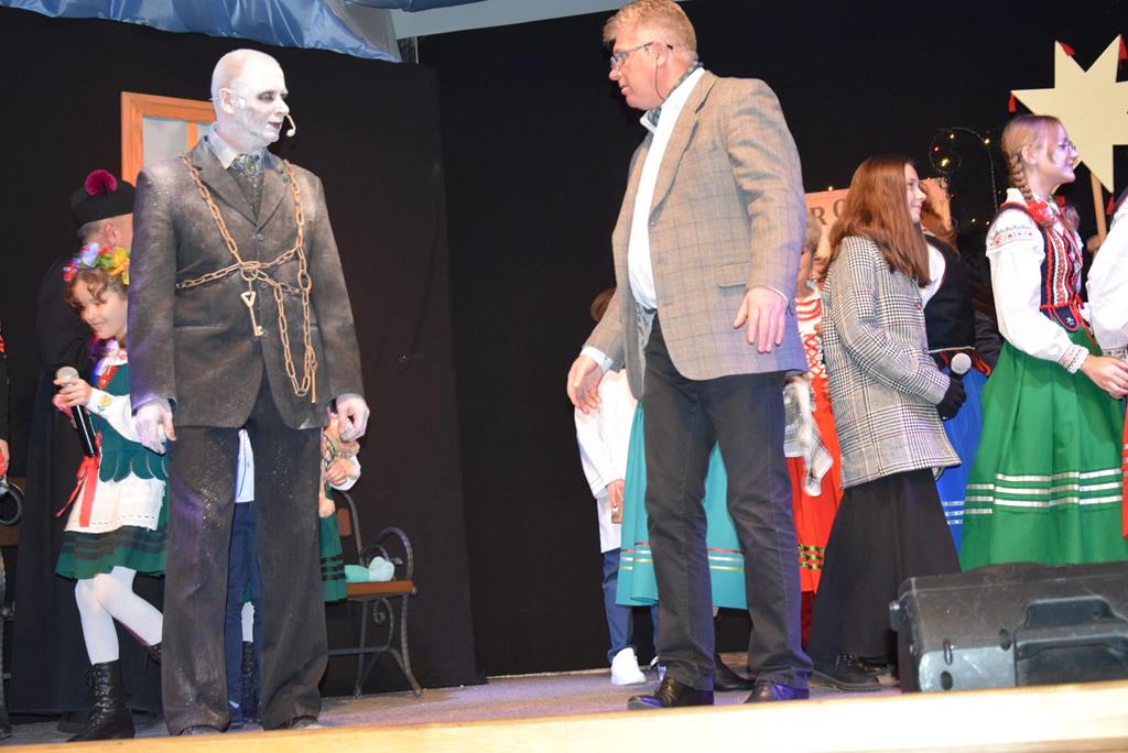 „Opowieść wigilijna” w wykonaniu kałkowskiego teatru, to także scenki z kultury polskiej, śpiew kolęd i pastorałek. W godzinnym spektaklu bierze udział ponad 20 osób.