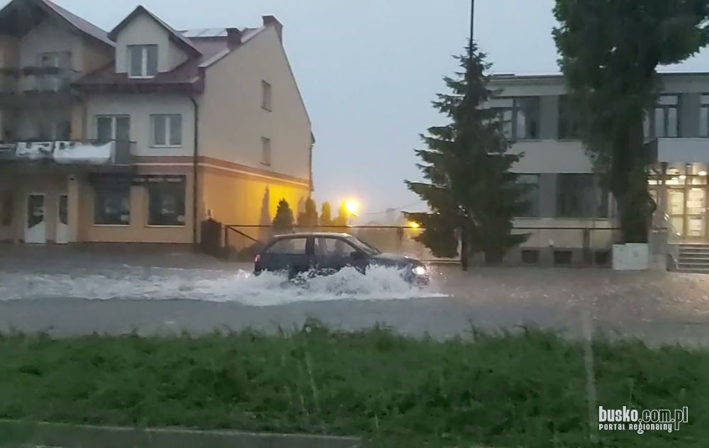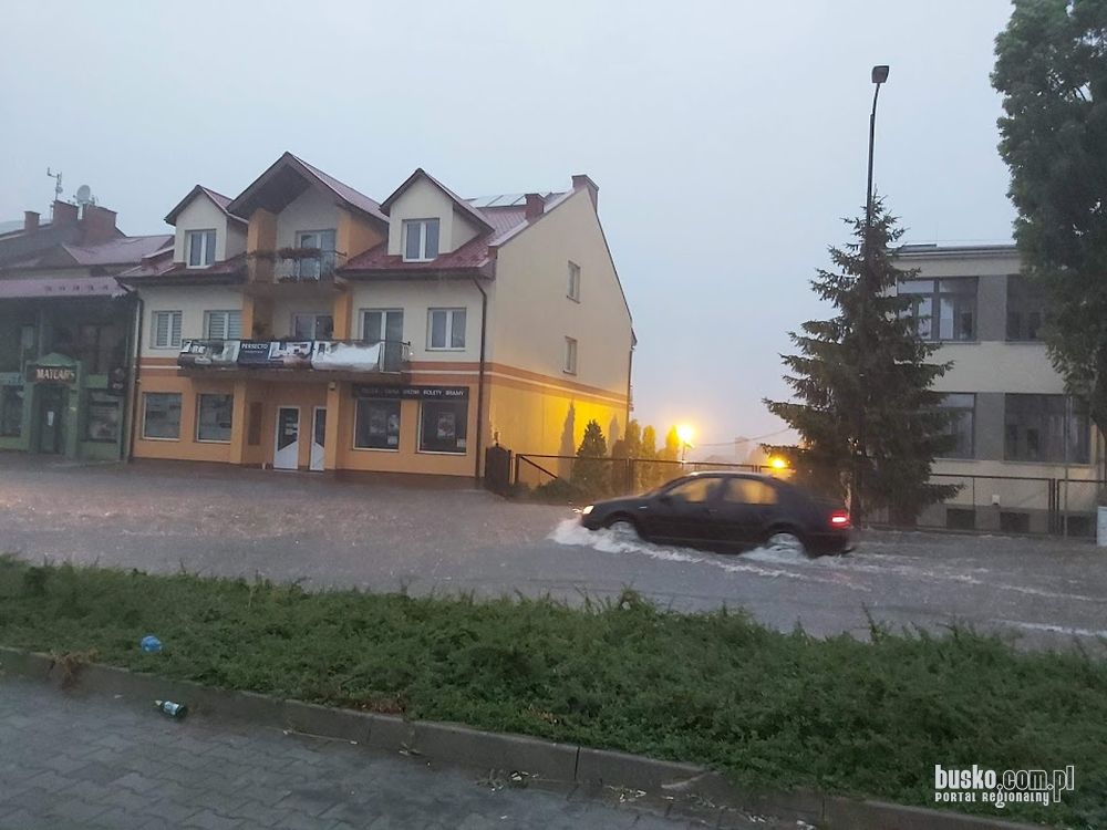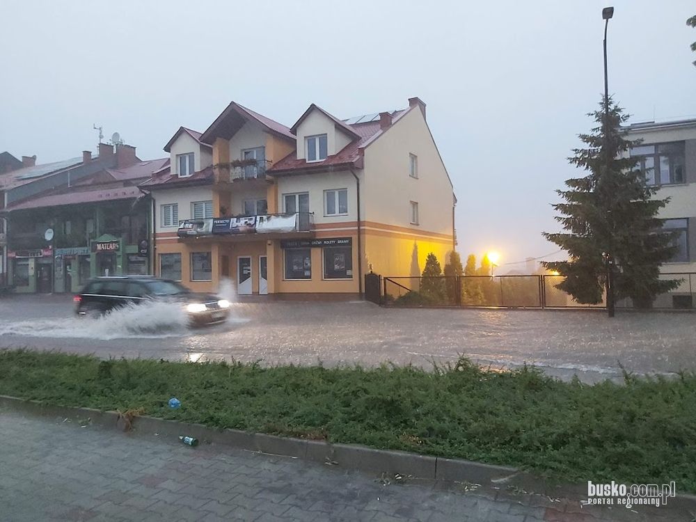 Busko-Zdrój, ulica Partyzantów♂ 5./6./7.  11 lipca 2021 r.: Kolejny deszcz i kolejne podtopienie ważnej miejskiej arterii komunikacyjnej, ulicy Partyzantów. / fot. busko.com.pl♂