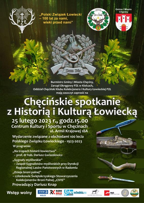 W Chęcinach 25 lutego spotkali się łowczy Kół Łowieckich z województwa świętokrzyskiego. Wydarzenie pod nazwą „Chęcińskie spotkanie z historią i kulturą łowiecką” zostało zorganizowane w ramach obchodów 100-lecia Polskiego Związku Łowieckiego.- informuje 25.02.2023 portal TVP3 Kielce