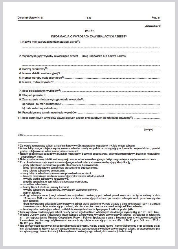 Załącznik – Wzór formularza informacji o wyrobach zawierających azbest [.pdf♂]
