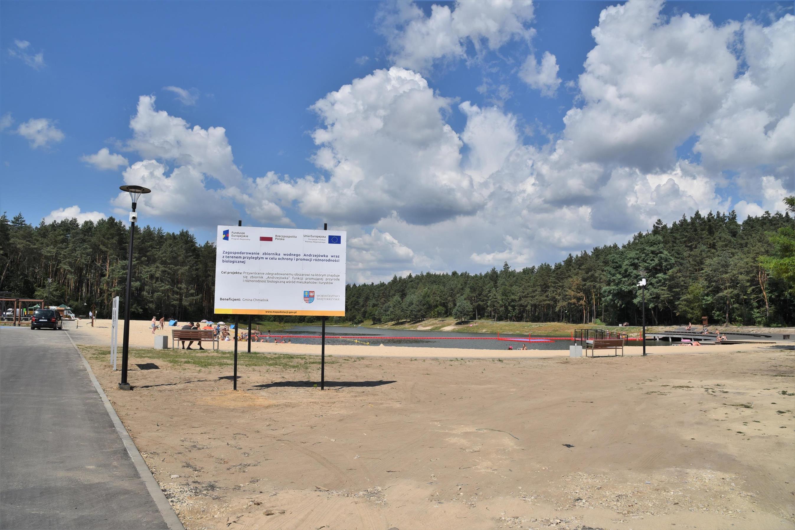 W ramach zagospodarowania terenu wokół zbiornika wodnego Andrzejówka został wybudowany budynek sanitarny mieszczący toalety i przebieralnie dostępny codziennie w godzinach pracy ratowników. Powstały atrakcyjne pomosty pływające, piękna plaża z betonowymi leżakami jako wymarzone miejsce do opalania. Zadaszona wiata łukowa to idealne miejsce do odpoczynku dla osób stroniących od słońca. Dla miłośników długich spacerów przygotowana została ścieżka edukacyjna, która z pewnością zaciekawi zarówno dzieci jak i dorosłych.