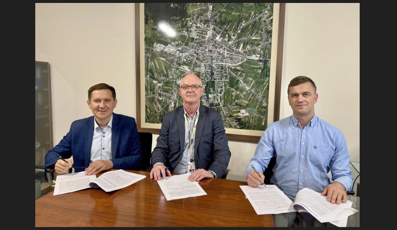 ○ Busko-Zdrój, 10.09.2025: Podpisano umowę na budowę nowych ścieżek rowerowych w Busku-Zdroju. Na zdjęciu od lewej: Skarbnik MiG Busko-Zdrój: Tokarz Artur , burmistrz MiG Busko-Zdrój Jerzy Szydłowski i przedstawiciel kieleckiej firmy Inżynieryjne Budownictwo Wodno-Lądowe Piotr Mojżeszek spółka komandytowa. / fot. UMiG Busko-Zdrój