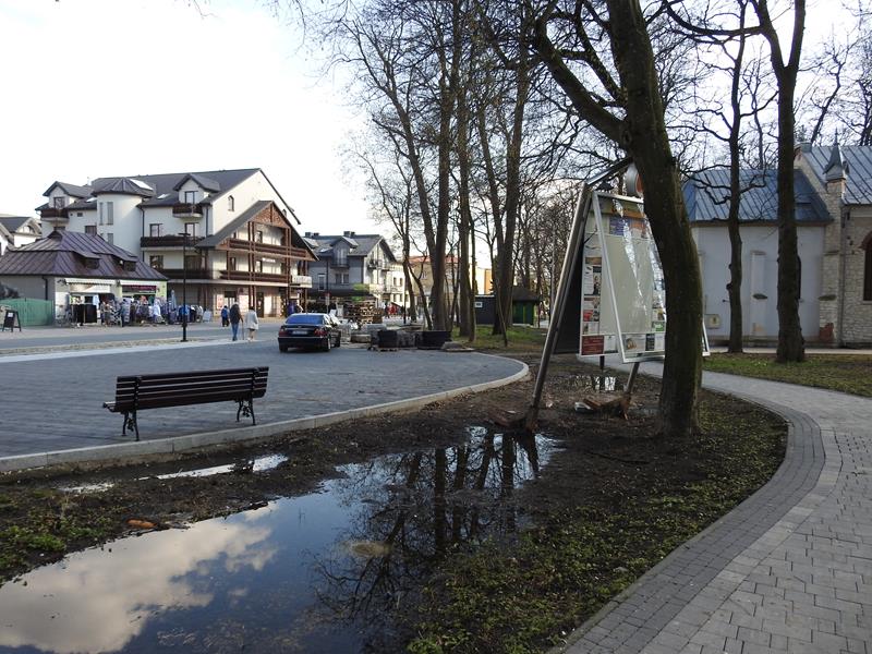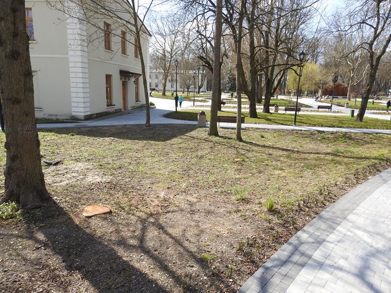 Niestety ja, przyglądając się bardziej wnikliwie dostrzegam głębokie, niepokojące rysy na tym obrazie. Pierwsze co dla mnie, osoby pamiętającej wcześniejszy wygląd parku, rzuca się w oczy i przytłacza to wielka ilość „betonu”, zwłaszcza w części centralnej. Odnoszę wrażenie, że alejki i dukty parkowe zostały znacznie poszerzone i obecnie jest może i 2x więcej „betonu” w zabytkowym Parku zaprojektowanym przez arch Henryka Marconiego blisko dwa wieki temu. Jeśli tak ma wyglądać przywracanie XIX wiecznego charakteru tego miejsca – a takie deklaracje jak pamiętam składał UMiG przystępując do rewitalizacji parku, to chyba komuś słowa mocno się rozminęły z czynami.
