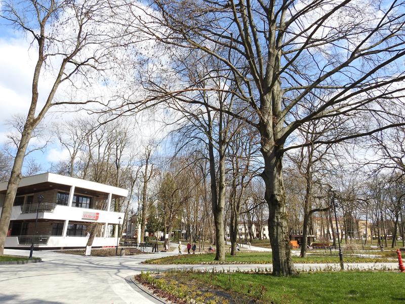 Podobny los spotka niebawem kolejne pomnikowe drzewo – pięknego, dorodnego, myślę, że ponad stuletniego, buka czerwonego, rosnącego przy głównej alei, opodal kawiarni „Victoria”. To był jeden z najciekawszych i najbardziej charakterystycznych okazów flory w zabytkowym parku zdrojowym! Nikomu już więc nie uda się powtórzyć nastrojowych zdjęć mistrza Piotra Kalety, które przedstawiały fronton Marconiego ujęty w obramowanie listowia koron tego buka i jego „brata” rosnącego obok, po drugiej stronie trotuaru. Choć może… może się uda, ale najwcześniej to za 100 lat…