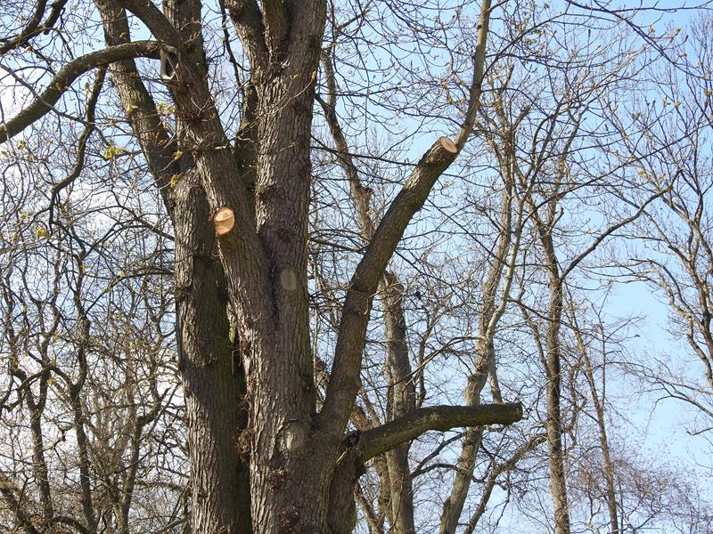 Innym rozwiązaniem, które zaobserwowałem w parku, które jak mi się wydaje jest stosowane przez służby, jest obcięcie konarów starych drzew nad ławką, tak, by ptaki nie siedziały nad ławką… Metoda to zaiste skuteczna, ale dla drzewa bywa, że zabójcza, gdyż przez powstałe rany, w dotychczas zdrową tkankę drzewa wnikają grzyby i inne mikroby, co powoduje, że drzewo zaczyna chorować. Ta postępująca z czasem degradacja sprawia, że za jakiś czas UMiG i specjaliści „ze specjalnymi uprawnieniami” stwierdzają, że to biedne drzewo niestety jest już na tyle chore, że należy je usunąć… Wymownym przykładem tego zjawiska jest Aleja Mickiewicza, z której liczącego może i sto lat dostojnego, zabytkowego drzewostanu, od czasu rewitalizacji ubyło już wiele drzew i co rusz ubywają kolejne…