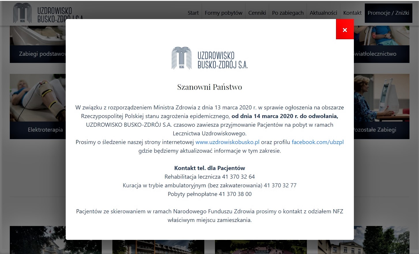 - infobusko.pl [14.03.2020]: – NFZ: Uzdrowiska czasowo zawieszają działalność od dnia 14 marca 2020 r.