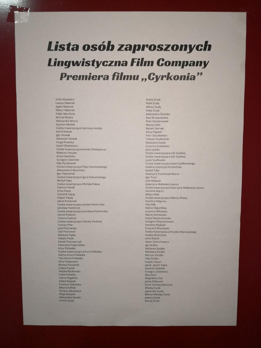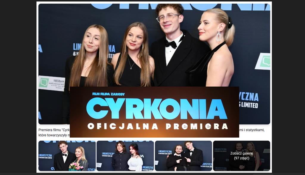 W sobotnie popołudnie, 11 stycznia, w buskim Domu Kultury Buskim Samorządowym Centrum Kultury panowała atmosfera przypominająca ceremonię rozdania Oscarów w Teatrze Dolby w Hollywood, a to za przyczyną  premiery obrazu „Cyrkonia”, którego reżyserem jest buskowianin Filip Zaręba, absolwent 1.LO, student krakowskiej Akademii Sztuk Teatralnych. informuje 11.01.2025 portal busko-zdroj.naszemiasto.pl